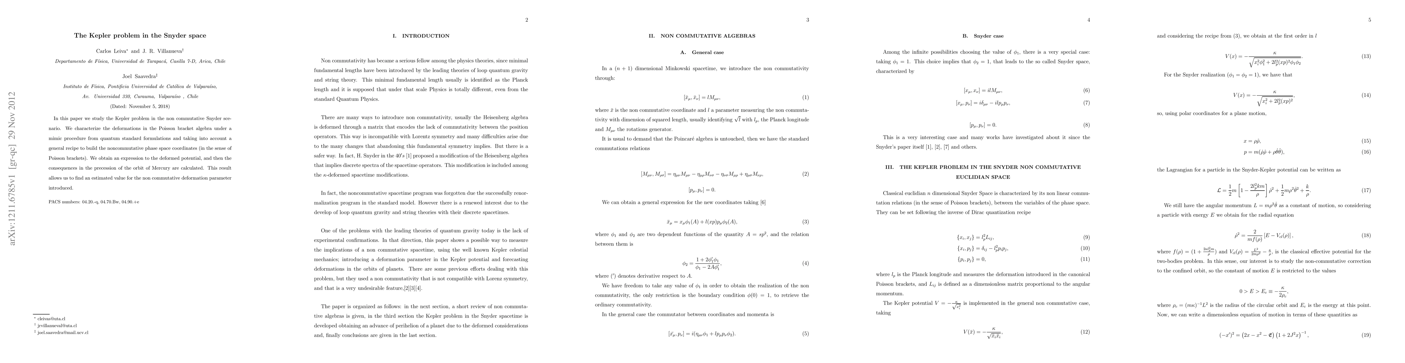 This paper investigates the Kepler problem in the context of Snyder space, exploring deformations in the Poisson bracket algebra and deriving a deformed potential. The study calculates the precession of Mercury's orbit, providing an estimated value for the noncommutative deformation parameter.
