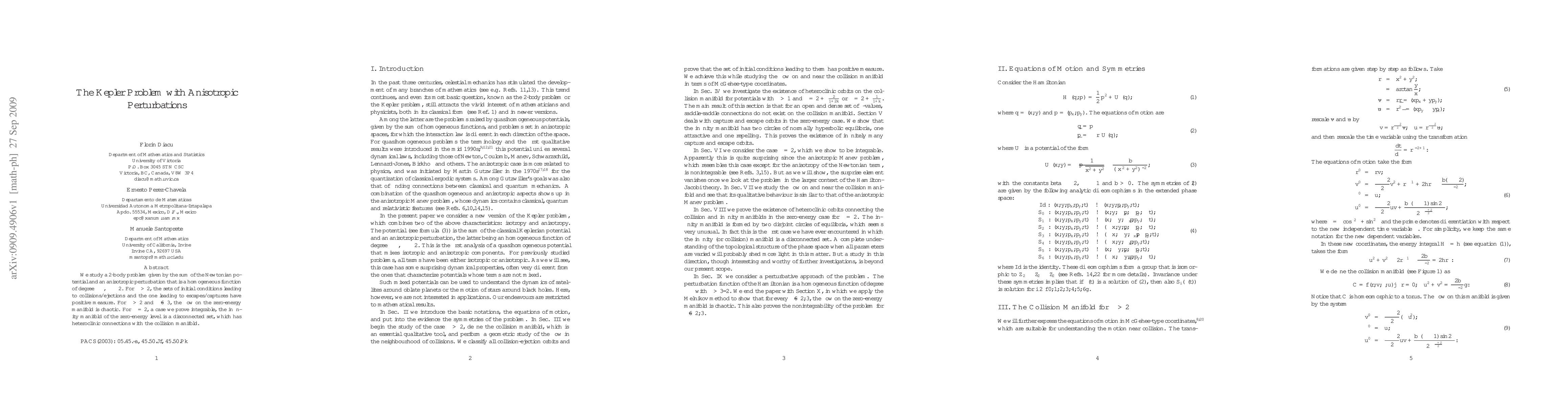 A study of a 2-body problem with anisotropic perturbations reveals chaotic behavior for certain values of the perturbation degree, leading to multiple stable outcomes including collisions, ejections, escapes, and captures.