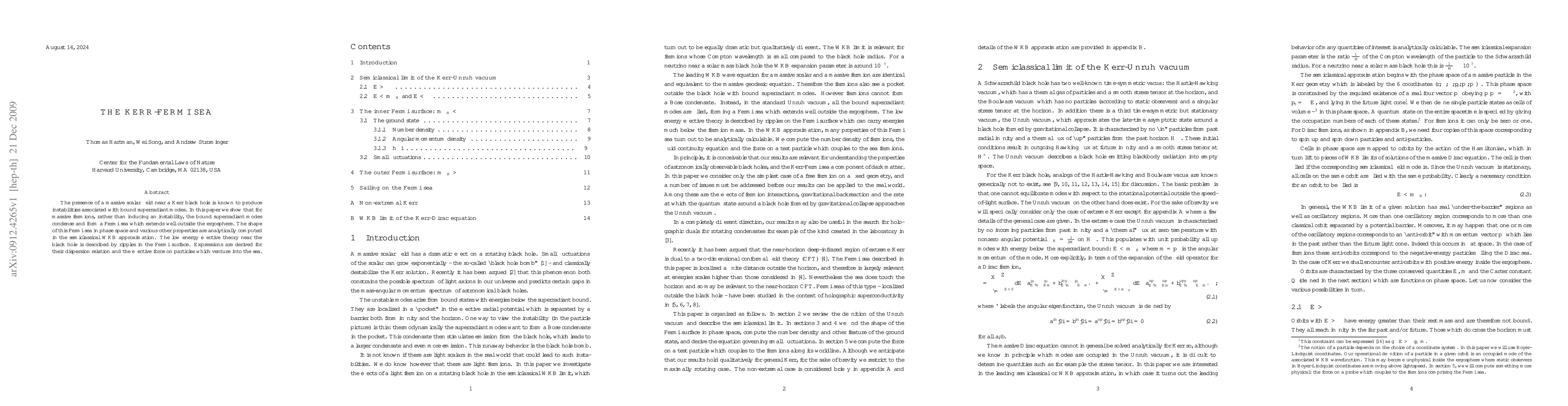 This paper demonstrates that in the vicinity of a Kerr black hole, massive fermions condense into a Fermi sea instead of inducing instability, unlike scalar fields. The Fermi sea's shape and properties are analytically computed using the semiclassical WKB approximation, revealing ripples in the Fermi surface that describe the low energy effective theory near the black hole.