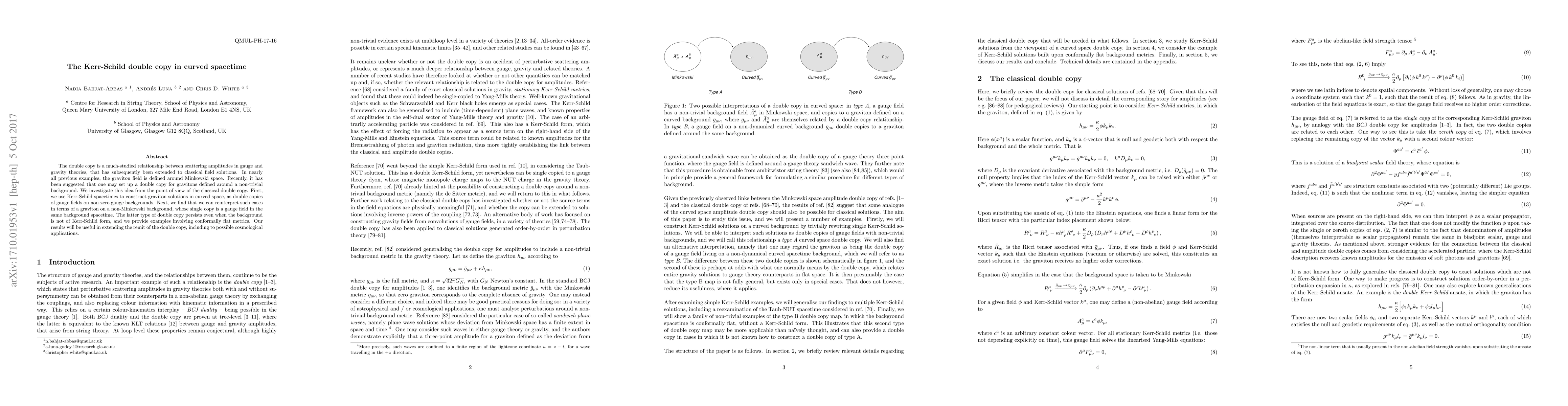 The paper introduces a method to construct type A and B curved spacetime double copies, extending the flat space double copy to curved backgrounds.