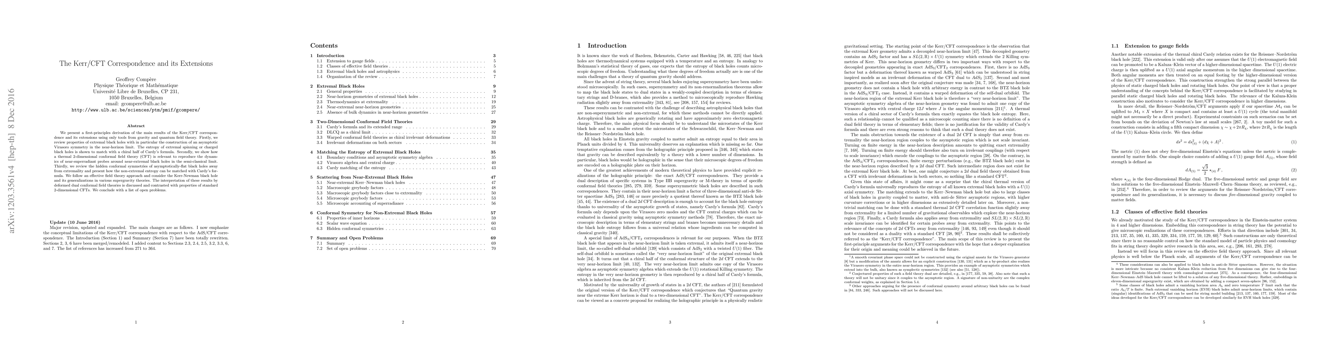 We present a first-principles derivation of the main results of the Kerr/CFT correspondence and its extensions using only tools from gravity and quantum field theory. Firstly, we review properties of extremal black holes with in particular the construction of an asymptotic Virasoro symmetry in the near-horizon limit. The entropy of extremal spinning or charged black holes is shown to match with a chiral half of Cardy's formula. Secondly, we show how a thermal 2-dimensional conformal field theory (CFT) is relevant to reproduce the dynamics of near-superradiant probes around near-extremal black holes in the semi-classical limit. Thirdly, we review the hidden conformal symmetries of asymptotically-flat black holes away from extremality and present how the non-extremal entropy can be matched with Cardy's formula. We follow an effective field theory approach and consider the Kerr-Newman black hole and its generalizations in various supergravity theories. The interpretation of these results by deformed dual conformal field theories is discussed and contrasted with properties of standard 2-dimensional CFTs. We conclude with a list of open problems.