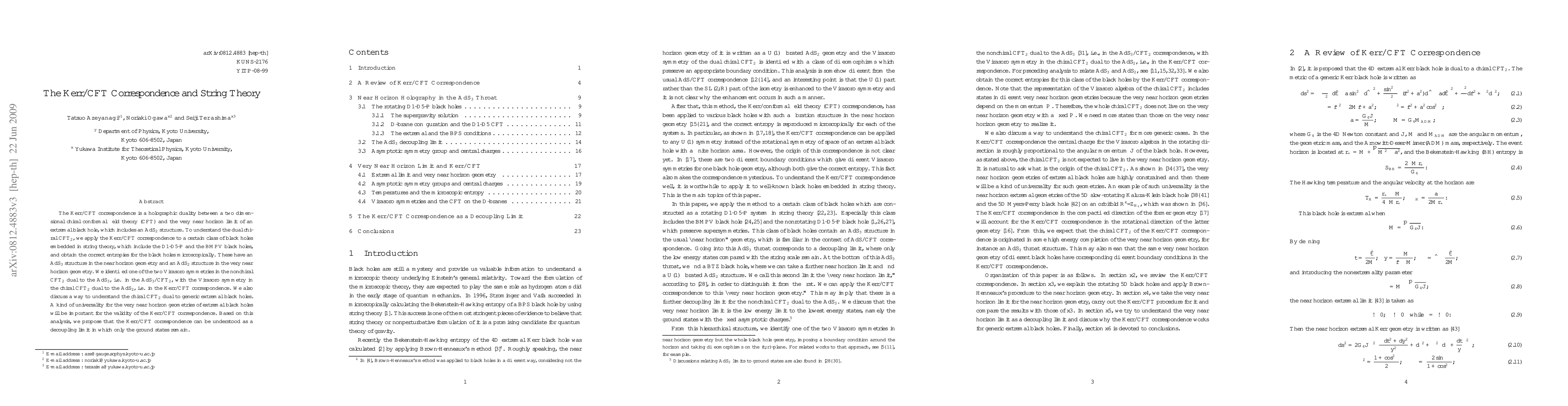 The Kerr/CFT correspondence is a holographic duality between a two dimensional chiral conformal field theory (CFT) and the very near horizon limit of an extremal black hole, which includes an AdS2 structure. To understand the dual chiral CFT2, we apply the Kerr/CFT correspondence to a certain class of black holes embedded in string theory, which include the D1-D5-P and the BMPV black holes, and obtain the correct entropies for the black holes microscopically. These have an AdS3 structure in the near horizon geometry and an AdS2 structure in the very near horizon geometry. We identified one of the two Virasoro symmetries in the nonchiral CFT2 dual to the AdS3, i.e. in the AdS3/CFT2, with the Virasoro symmetry in the chiral CFT2 dual to the AdS2, i.e. in the Kerr/CFT correspondence. We also discuss a way to understand the chiral CFT2 dual to generic extremal black holes. A kind of universality for the very near horizon geometries of extremal black holes will be important for the validity of the Kerr/CFT correspondence. Based on this analysis, we propose that the Kerr/CFT correspondence can be understood as a decoupling limit in which only the ground states remain.