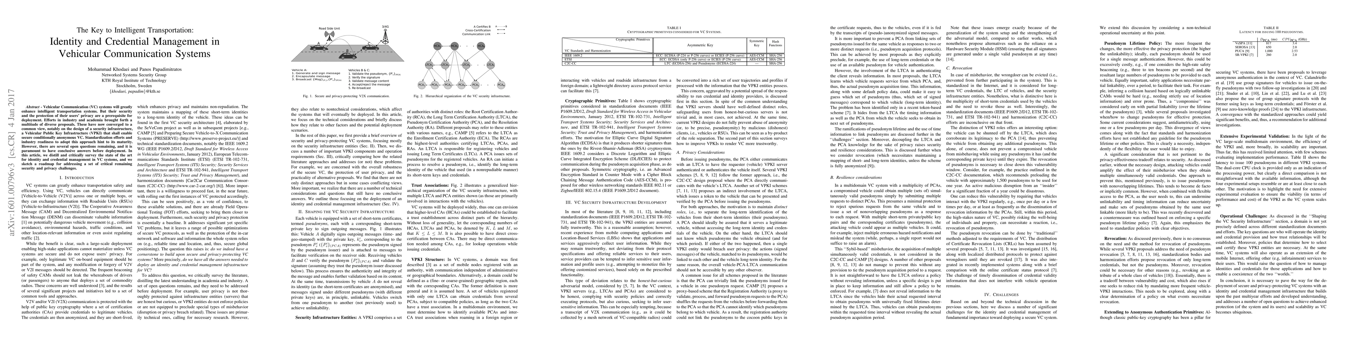 This paper surveys the current state of identity and credential management in vehicular communication systems, emphasizing the development of a Vehicular Public Key Infrastructure (VPKI) for secure, conditionally anonymous communication. It outlines remaining security and privacy challenges and proposes a roadmap for addressing them before widespread deployment.