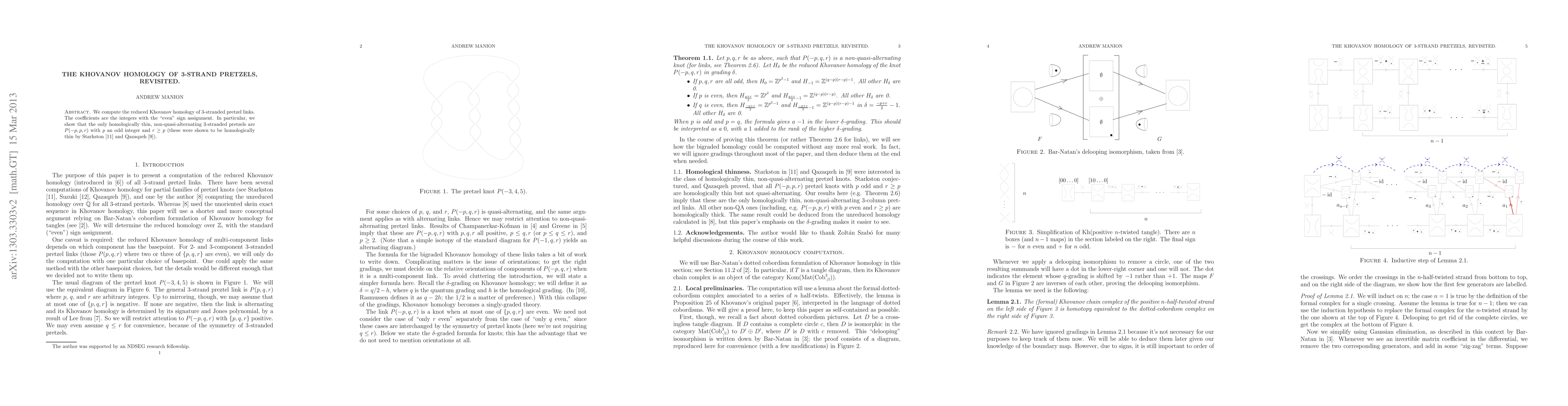 Summary: The paper computes the reduced Khovanov homology for 3-stranded pretzel links using integer coefficients with the "even" sign, identifying that non-quasi-alternating homologically thin pretzels are of the form P(-p,p,r) where p is odd and r ≥ p.