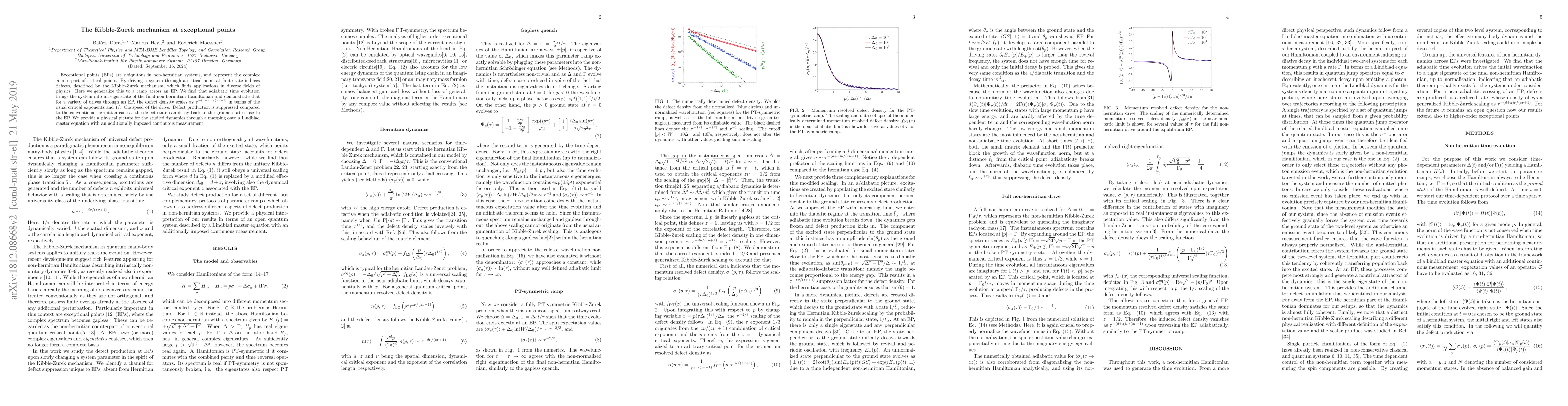 Exceptional points (EPs) are ubiquitous in non-hermitian systems, and represent the complex counterpart of critical points. By driving a system through a critical point at finite rate induces defects, described by the Kibble-Zurek mechanism, which finds applications in diverse fields of physics. Here we generalize this to a ramp across an EP. We find that adiabatic time evolution brings the system into an eigenstate of the final non-hermitian Hamiltonian and demonstrate that for a variety of drives through an EP, the defect density scales as $\tau^{-(d+z)\nu/(z\nu+1)}$ in terms of the usual critical exponents and $1/\tau$ the speed of the drive. Defect production is suppressed compared to the conventional hermitian case as the defect state can decay back to the ground state close to the EP. We provide a physical picture for the studied dynamics through a mapping onto a Lindblad master equation with an additionally imposed continuous measurement.