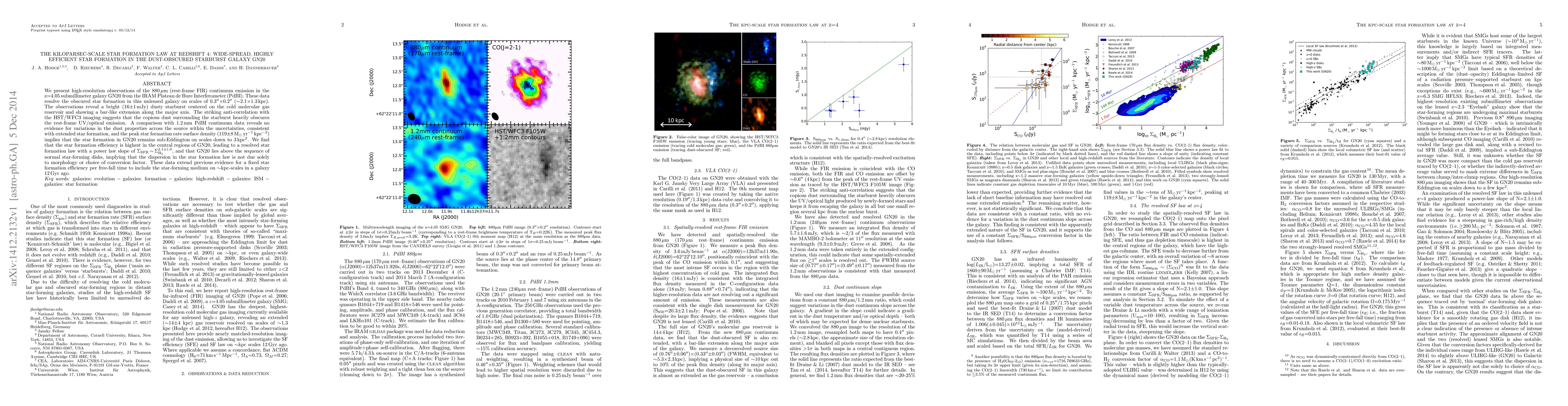 The research presents high-resolution observations and analysis of the star formation law at redshift 4, revealing highly efficient star formation in GN20 and a resolved star formation law with a power-law slope of Σ_SFR ∼ Σ_H₂^(2.1±1.0).