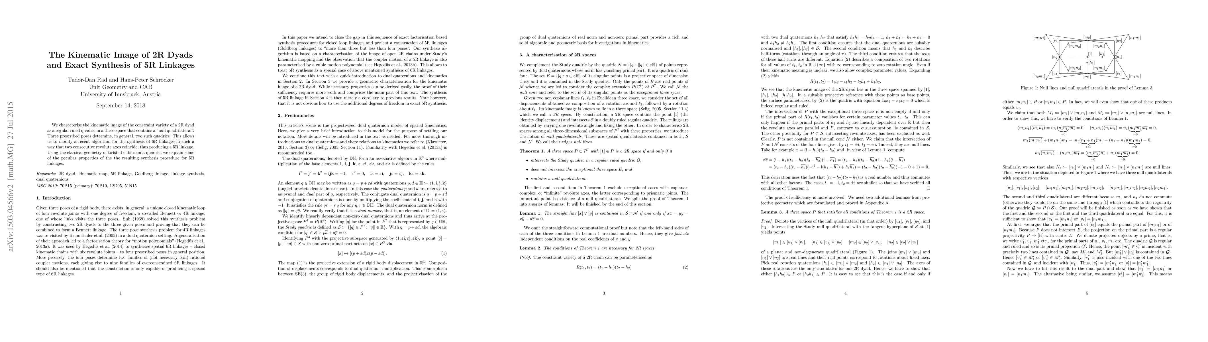 We characterise the kinematic image of the constraint variety of a 2R dyad as a regular ruled quadric in a 3-space that contains a "null quadrilateral". Three prescribed poses determine, in general, two such quadrics. This allows us to modify a recent algorithm for the synthesis of 6R linkages in such a way that two consecutive revolute axes coincide, thus producing a 5R linkage. Using the classical geometry of twisted cubics on a quadric, we explain some of the peculiar properties of the the resulting synthesis procedure for 5R linkages.