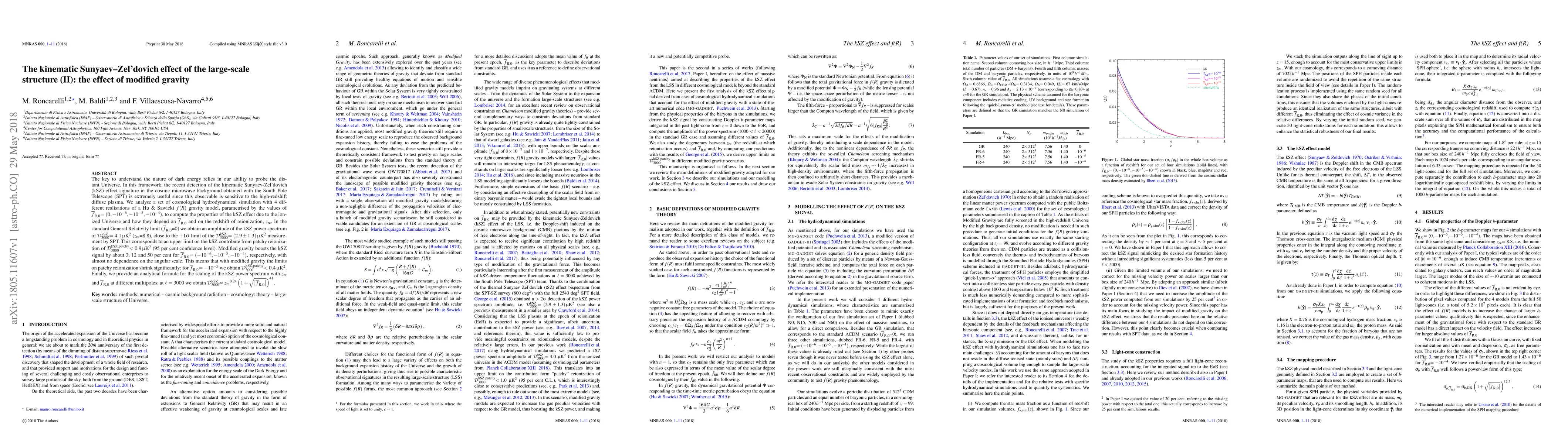 The key to understand the nature of dark energy relies in our ability to probe the distant Universe. In this framework, the recent detection of the kinematic Sunyaev-Zel'dovich (kSZ) effect signature in the cosmic microwave background obtained with the South Pole Telescope (SPT) is extremely useful since this observable is sensitive to the high-redshift diffuse plasma. We analyse a set of cosmological hydrodynamical simulation with 4 different realisations of a Hu & Sawicki $f(R)$ gravity model, parametrised by the values of $\overline{f}_{\rm R,0}=(0,-10^{-6},-10^{-5},-10^{-4})$, to compute the properties of the kSZ effect due to the ionized Universe and how they depend on $\overline{f}_{\rm R,0}$ and on the redshift of reionization, $z_{\rm re}$. In the standard General Relativity limit ($\overline{f}_{\rm R,0}$=0) we obtain an amplitude of the kSZ power spectrum of $\mathcal{D}^{\rm kSZ}_{3000}=4.1\,$$\mu$K$^2$ ($z_{\rm re}$=8.8), close to the $+1\sigma$ limit of the $\mathcal{D}^{\rm kSZ}_{3000}=(2.9\pm1.3)\,$$\mu$K$^2$ measurement by SPT. This corresponds to an upper limit on the kSZ contribute from patchy reionization of $\mathcal{D}^{\rm kSZ,patchy}_{3000}<0.9\,$$\mu$K$^2$ (95 per cent confidence level). Modified gravity boosts the kSZ signal by about 3, 12 and 50 per cent for $\overline{f}_{\rm R,0}=(-10^{-6},-10^{-5},-10^{-4})$, respectively, with almost no dependence on the angular scale. This means that with modified gravity the limits on patchy reionization shrink significantly: for $\overline{f}_{\rm R,0}=-10^{-5}$ we obtain $\mathcal{D}^{\rm kSZ,patchy}_{3000}<0.4\,$$\mu$K$^2$. Finally, we provide an analytical formula for the scaling of the kSZ power spectrum with $z_{\rm re}$ and $\overline{f}_{\rm R,0}$ at different multipoles: at $\ell=3000$ we obtain $\mathcal{D}^{\rm kSZ}_{3000}\propto z_{\rm re}^{0.24}\left(1+\sqrt{\left|\overline{f}_{\rm R,0}\right|}\right)^{41}$.