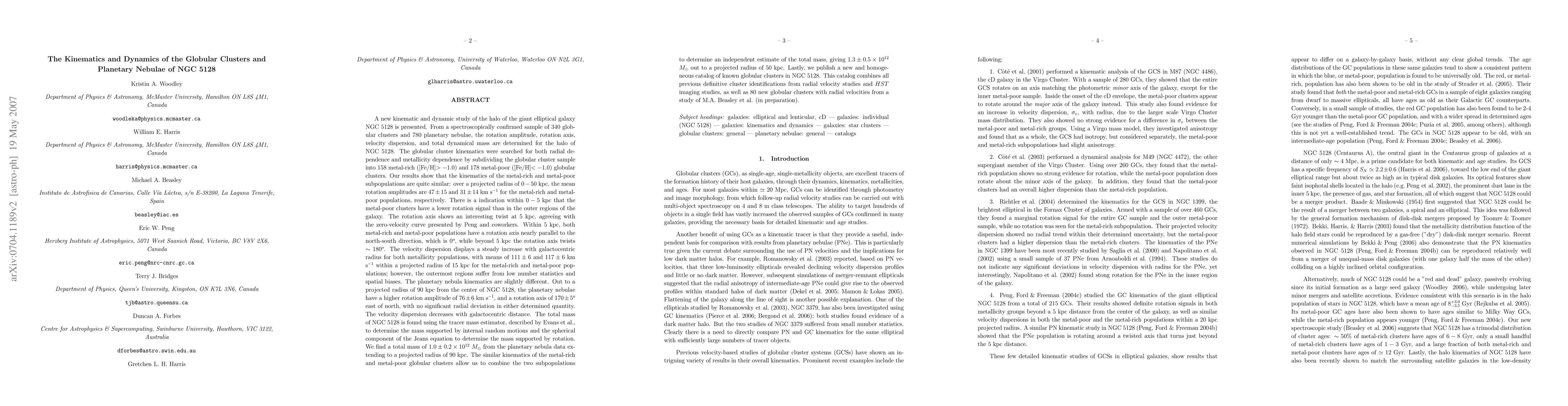 A new kinematic and dynamic study of the halo of the giant elliptical galaxy, NGC 5128, is presented. From a spectroscopically confirmed sample of 340 globular clusters and 780 planetary nebulae, the rotation amplitude, rotation axis, velocity dispersion, and the total dynamical mass are determined for the halo of NGC 5128. The globular cluster kinematics were searched for both radial dependence and metallicity dependence by subdividing the globular cluster sample into 158 metal-rich ([Fe/H] > -1.0) and 178 metal-poor ([Fe/H] < -1.0) globular clusters. Our results show the kinematics of the metal-rich and metal-poor subpopulations are quite similar. The kinematics are compared to the planetary nebula population where differences are apparent in the outer regions of the halo. The total mass of NGC 5128 is found using the Tracer Mass estimator (Evans et al. 2003), to determine the mass supported by internal random motions, and the spherical component of the Jeans equation to determine the mass supported by rotation. We find a total mass of (1.0+/-0.2) x 10^(12) Msun from the planetary nebulae data out to a projected radius of 90 kpc and (1.3+/-0.5) x 10^(12) Msun from the globular clusters out to a projected radius of 50 kpc. Lastly, we present a new and homogeneous catalog of known globular clusters in NGC 5128. This catalog combines all previous definitive cluster identifications from radial velocity studies and HST imaging studies, as well as 80 new globular clusters from a study of M.A. Beasley et al. (2007, in preparation).