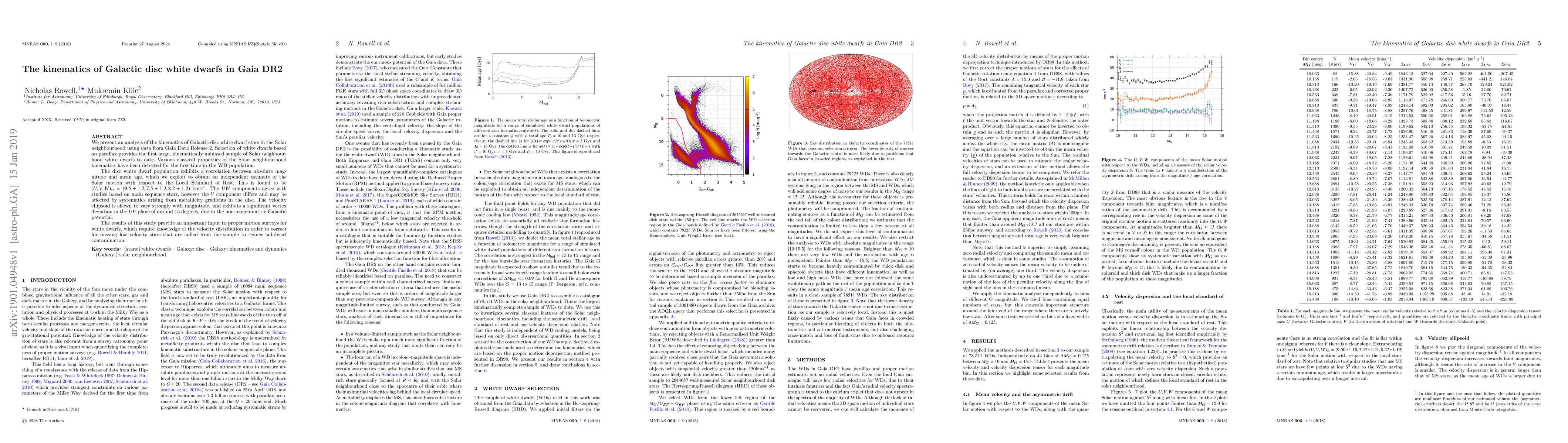 This study analyzes the kinematics of Galactic disc white dwarfs using Gaia DR2 data, revealing new properties of the Solar neighbourhood and estimating the Solar motion as $(U,V,W)_{\odot} = (9.5\pm1.2, 7.5\pm1.2, 8.2\pm1.2)$ kms$^{-1}$. The findings highlight a correlation between the white dwarfs' absolute magnitude and mean age, and show a significant vertex deviation due to the non-axisymmetric Galactic potential.