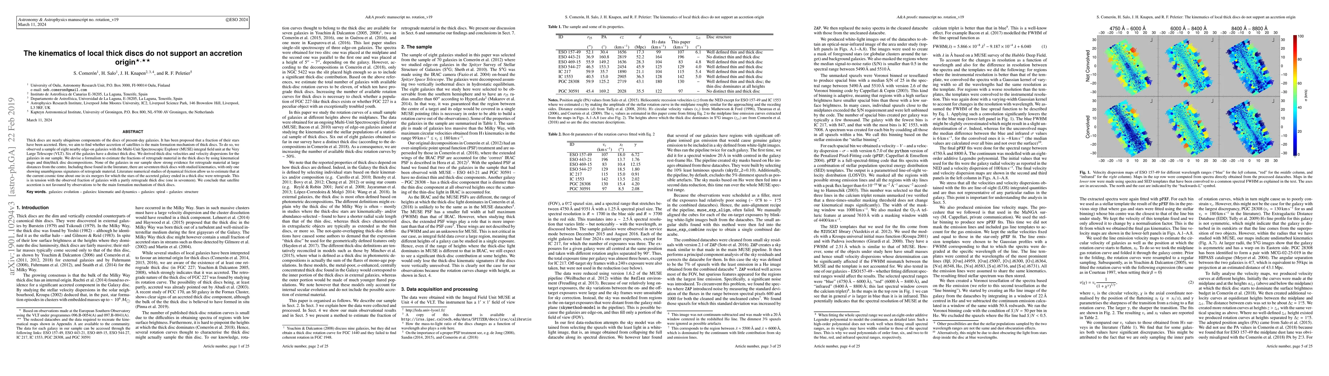 This paper investigates the kinematics of thick discs in nearby galaxies to determine if accretion is the main formation mechanism. Observations show that only one out of seventeen thick discs exhibits retrograde material, contradicting numerical predictions, leading to the conclusion that accretion is not the primary process.