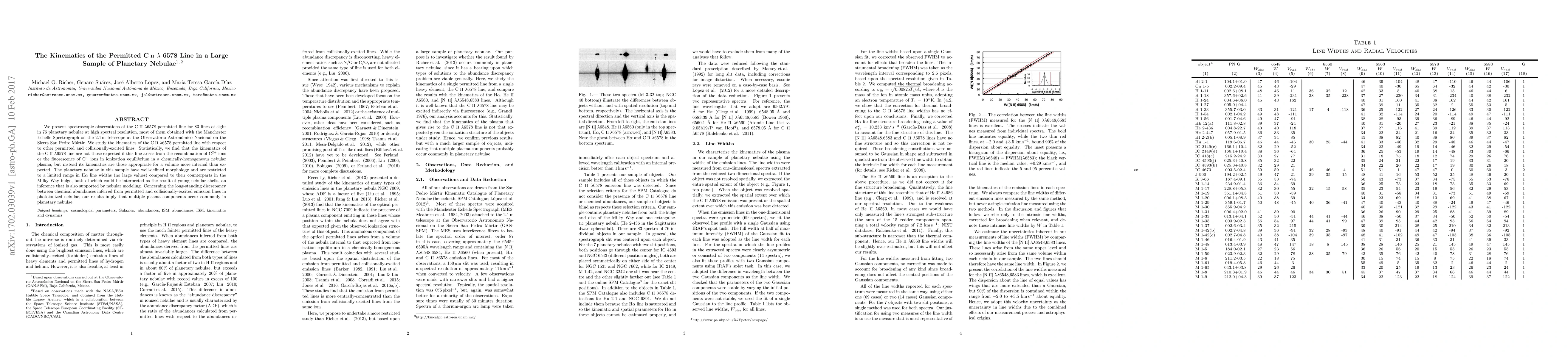 We present spectroscopic observations of the C II $\lambda$6578 permitted line for 83 lines of sight in 76 planetary nebulae at high spectral resolution, most of them obtained with the Manchester Echelle Spectrograph on the 2.1\,m telescope at the Observatorio Astron\'omico Nacional on the Sierra San Pedro M\'artir. We study the kinematics of the C II $\lambda$6578 permitted line with respect to other permitted and collisionally-excited lines. Statistically, we find that the kinematics of the C II $\lambda$6578 line are not those expected if this line arises from the recombination of C$^{2+}$ ions or the fluorescence of C$^+$ ions in ionization equilibrium in a chemically-homogeneous nebular plasma, but instead its kinematics are those appropriate for a volume more internal than expected. The planetary nebulae in this sample have well-defined morphology and are restricted to a limited range in H$\alpha$ line widths (no large values) compared to their counterparts in the Milky Way bulge, both of which could be interpreted as the result of young nebular shells, an inference that is also supported by nebular modeling. Concerning the long-standing discrepancy between chemical abundances inferred from permitted and collisionally-excited emission lines in photoionized nebulae, our results imply that multiple plasma components occur commonly in planetary nebulae.