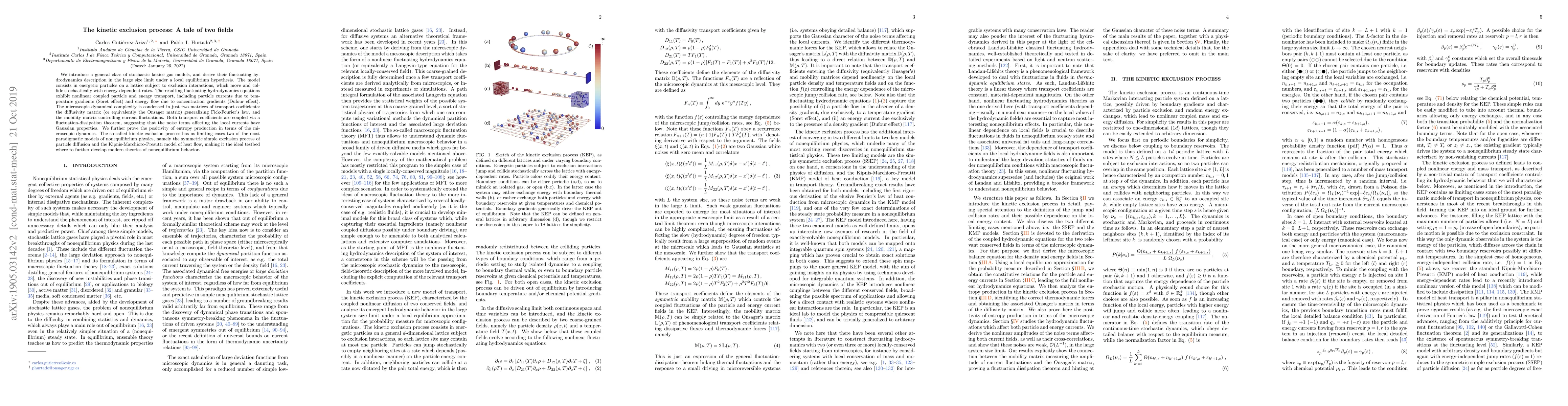 This research introduces a general stochastic lattice gas model, the kinetic exclusion process, which serves as a bridge between particle and heat diffusion models. It derives fluctuating hydrodynamics equations with coupled particle and energy transport, represented by two matrices of transport coefficients. The model exhibits Soret and Dufour effects, and its complexity is condensed into these matrices, linked via a fluctuation-dissipation theorem. The positivity of entropy production is proven, and the model encompasses well-known nonequilibrium models as limiting cases, making it a valuable tool for further developing nonequilibrium theories.