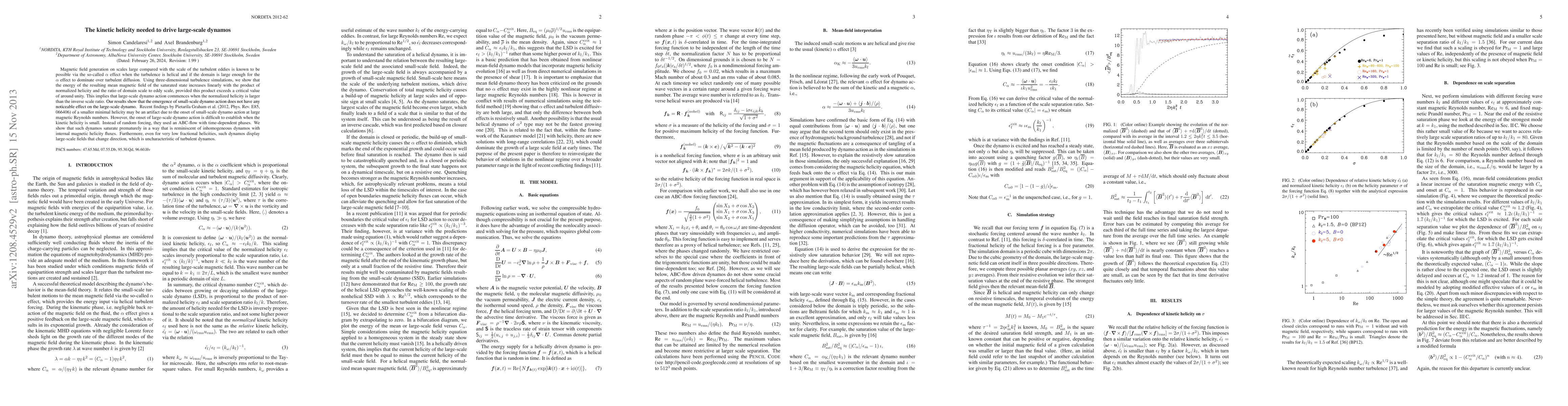 This paper demonstrates that large-scale dynamo action requires a critical level of kinetic helicity, showing that mean magnetic field energy increases linearly with the product of normalized helicity and scale ratio when exceeding a threshold. It concludes that small-scale dynamo action does not impact large-scale dynamos, and challenges previous findings that suggested a lower helicity threshold.