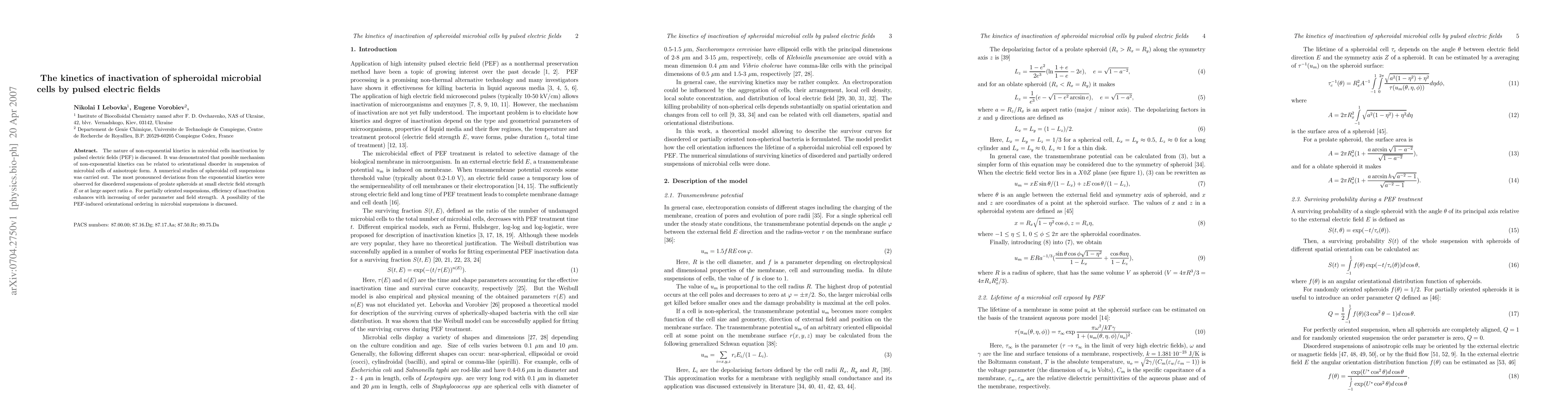 This paper explores the kinetics of microbial cell inactivation using pulsed electric fields, revealing non-exponential decay linked to orientational disorder in anisotropic spheroidal cells. Numerical studies show significant deviations from exponential kinetics in disordered prolate spheroids, with enhanced inactivation efficiency in more ordered suspensions.