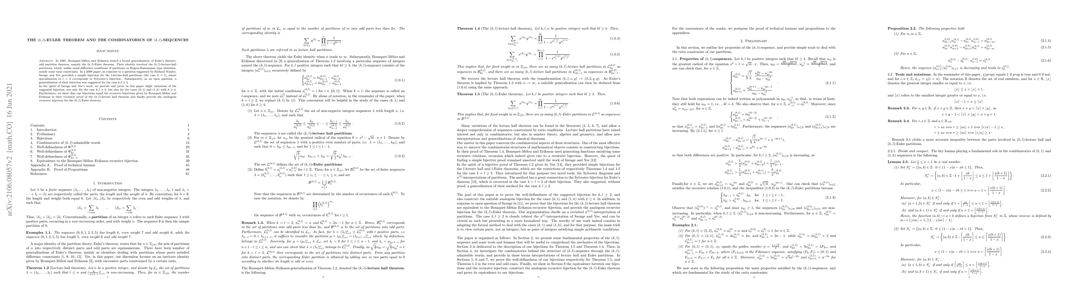 In 1997, Bousquet-M\'elou and Eriksson stated a broad generalization of Euler's distinct-odd partition theorem, namely the $(k,l)$-Euler theorem. Their identity involved the $(k,l)$-lecture-hall partitions, which, unlike usual difference conditions of partitions in Rogers-Ramanujan type identities, satisfy some ratio constraints. In a 2008 paper, in response to a question suggested by Richard Stanley, Savage and Yee provided a simple bijection for the $l$-lecture-hall partitions (the case $k=l$), whose specialization in $l=2$ corresponds to Sylvester's bijection. Subsequently, as an open question, a generalization of their bijection was suggested for the case $k,l\geq 2$. In the spirit of Savage and Yee's work, we provide and prove in this paper slight variations of the suggested bijection, not only for the case $k,l\geq 2$ but also for the cases $(k,1)$ and $(1,k)$ with $k\geq 4$. Furthermore, we show that our bijections equal the recursive bijections given by Bousquet-M\'elou and Eriksson in their recursive proof of the $(k,l)$-lecture hall and finally provide the analogous recursive bijection for the $(k,l)$-Euler theorem.