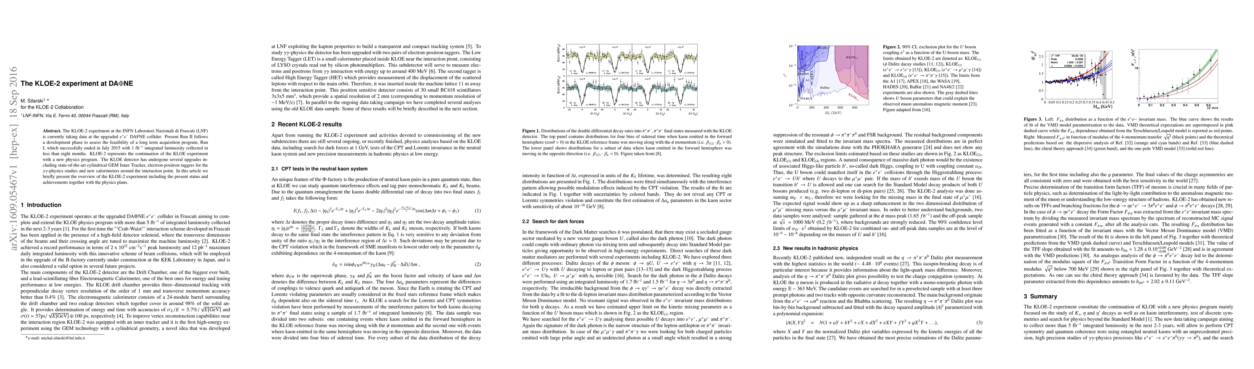 The KLOE-2 experiment at the INFN Laboratori Nazionali di Frascati (LNF) is currently taking data at the upgraded $e^{+}e^{-}$ DAFNE collider. Present Run II follows a~development phase to assess the feasibility of a long term acquisition program, Run I, which successfully ended in July 2015 with 1 fb$^{-1}$ integrated luminosity collected in less than eight months. KLOE-2 represents the continuation of the KLOE experiment with a new physics program. The KLOE detector has undergone several upgrades including state-of-the-art cylindrical GEM Inner Tracker, electron-positron taggers for the $\gamma\gamma$-physics studies and new calorimeters around the interaction point. In this article we briefly present the overview of the KLOE-2 experiment including the present status and achievements together with the physics plans.