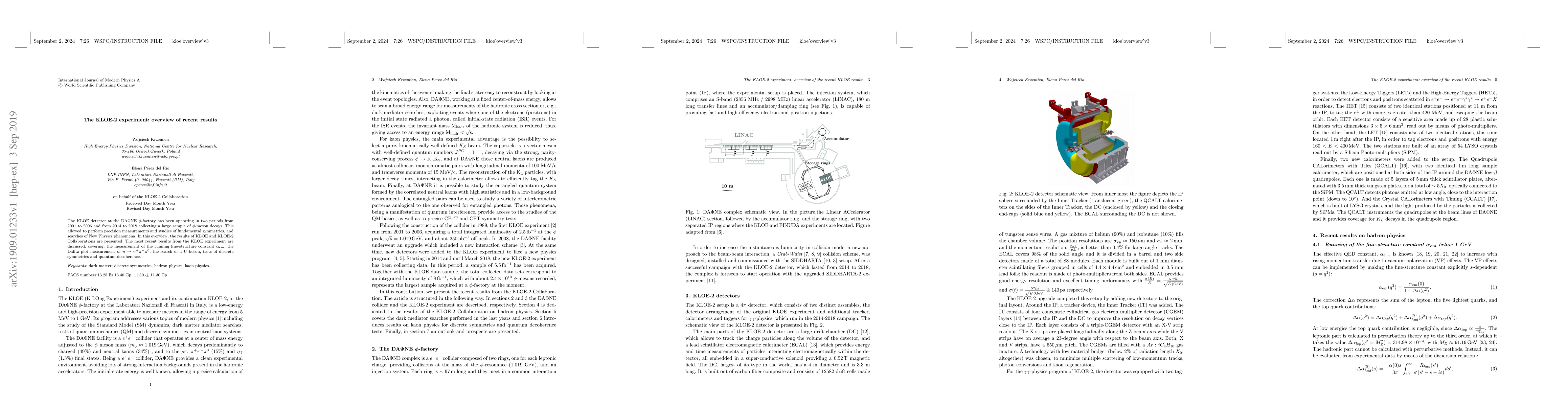 The KLOE-2 experiment at the DA$\Phi$NE $\phi$-factory has produced significant results including precision measurements of the fine-structure constant $\alpha_{em}$ and studies of $\eta \rightarrow \pi^+\pi^-\pi^0$ Dalitz plots, while also exploring potential New Physics phenomena such as the search for a U boson and tests of discrete symmetries.