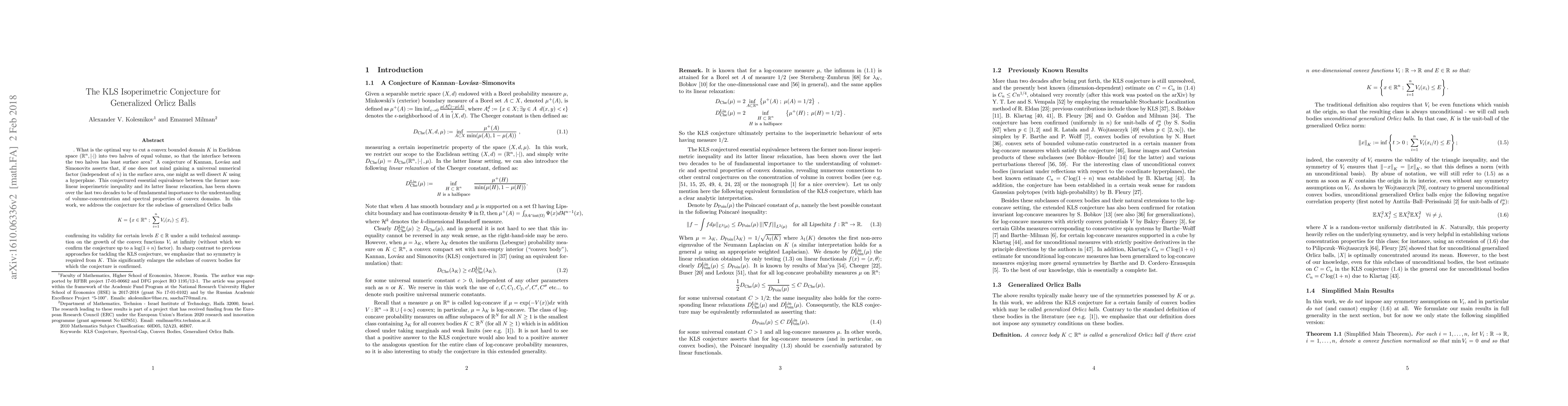 What is the optimal way to cut a convex bounded domain $K$ in Euclidean space $(\mathbb{R}^n,|\cdot|)$ into two halves of equal volume, so that the interface between the two halves has least surface area? A conjecture of Kannan, Lov\'asz and Simonovits asserts that, if one does not mind gaining a universal numerical factor (independent of $n$) in the surface area, one might as well dissect $K$ using a hyperplane. This conjectured essential equivalence between the former non-linear isoperimetric inequality and its latter linear relaxation, has been shown over the last two decades to be of fundamental importance to the understanding of volumetric and spectral properties of convex domains. In this work, we address the conjecture for the subclass of generalized Orlicz balls \[ K = \left \{x \in \mathbb{R}^n \; ; \; \sum_{i=1}^n V_i(x_i) \leq E \right \} , \] confirming its validity for certain levels $E \in \mathbb{R}$ under a mild technical assumption on the growth of the convex functions $V_i$ at infinity (without which we confirm the conjecture up to a $\log(1+n)$ factor). In sharp contrast to previous approaches for tackling the KLS conjecture, we emphasize that no symmetry is required from $K$. This significantly enlarges the subclass of convex bodies for which the conjecture is confirmed.