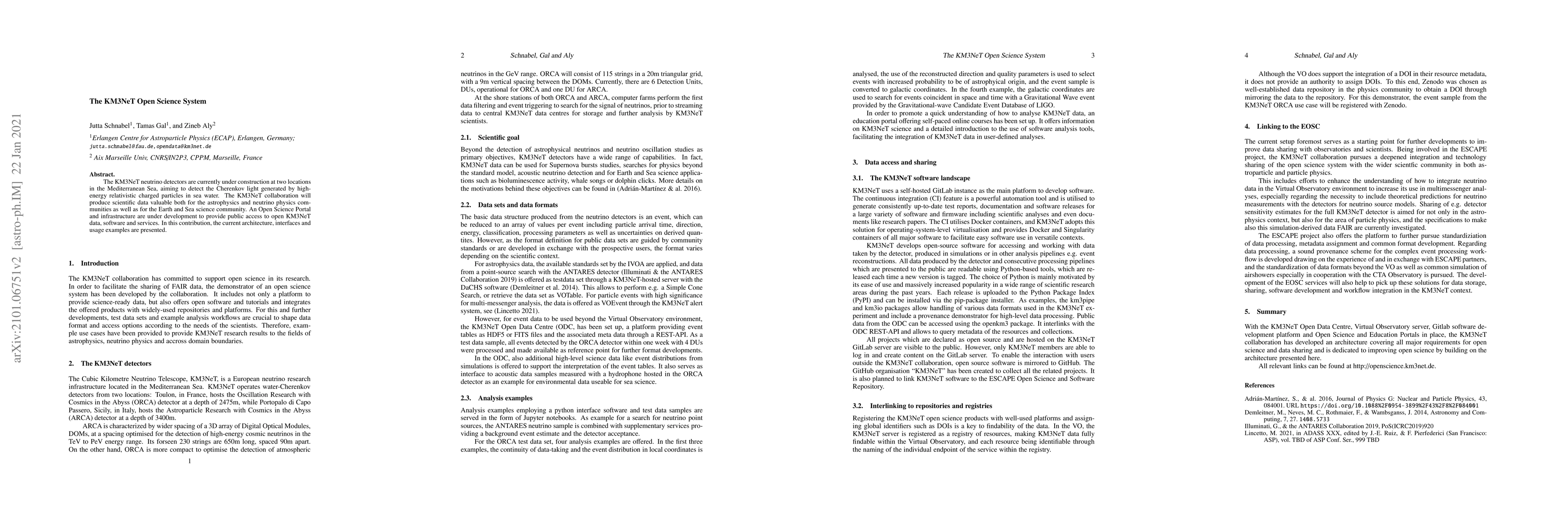 The KM3NeT neutrino detectors in the Mediterranean Sea aim to detect Cherenkov light from high-energy particles, generating valuable data for astrophysics, neutrino physics, and Earth sciences. An Open Science Portal is being developed to publicly share KM3NeT data, software, and services, showcasing its architecture and interfaces.