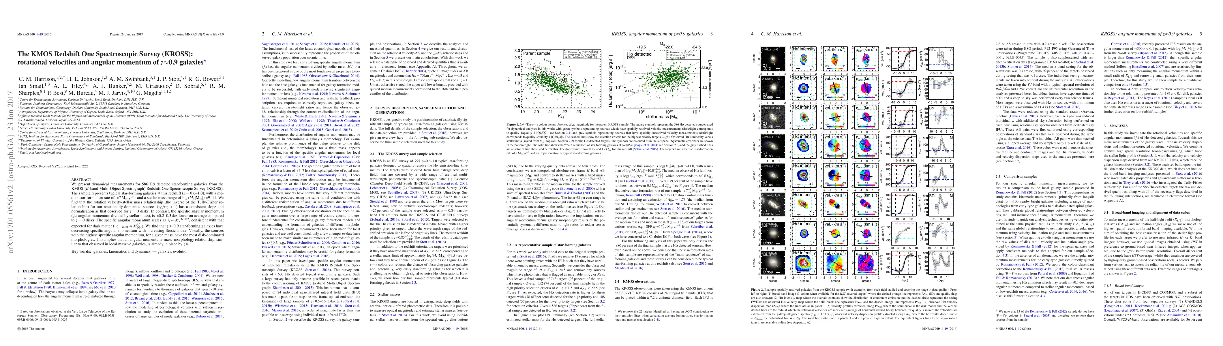 The KMOS Redshift One Spectroscopic Survey (KROSS) provides dynamical measurements for 586 star-forming galaxies at z~0.9, showing that their rotation velocity-stellar mass relationship aligns with local galaxies, while their specific angular momentum is lower and scales with stellar mass, indicating an angular momentum-mass-morphology relationship similar to that in nearby galaxies.