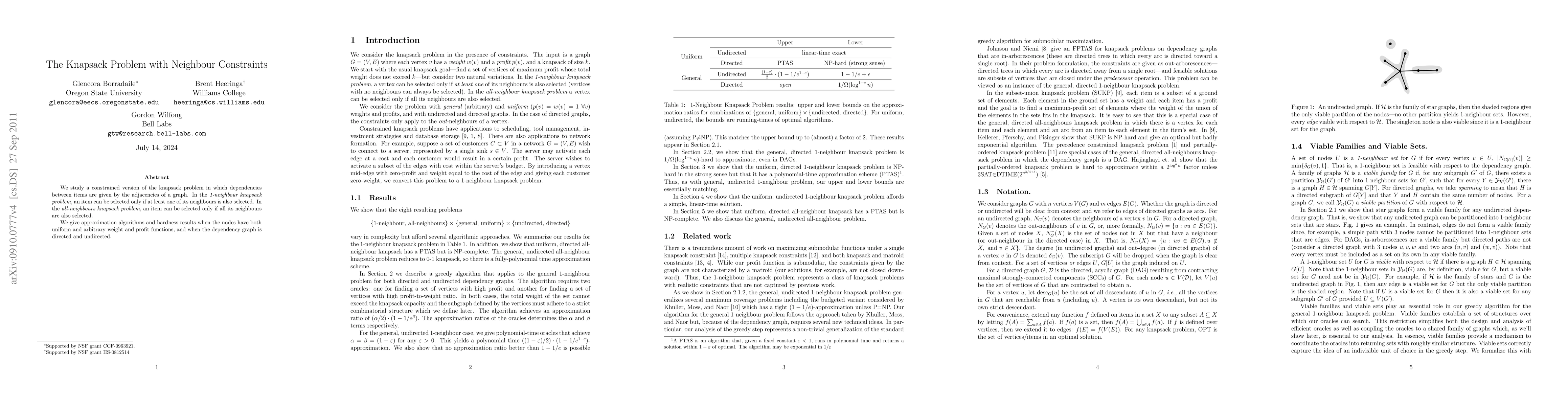 This paper investigates a constrained knapsack problem where item selection is restricted by graph adjacencies, presenting approximation algorithms and hardness results for both 1-neighbour and all-neighbours variants under various weight and profit conditions, and for both directed and undirected dependency graphs.