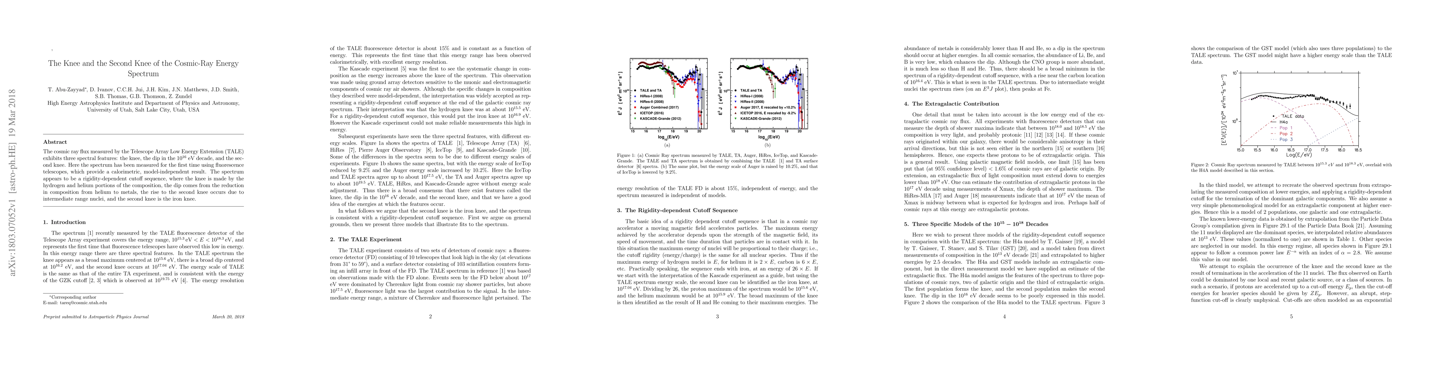 The cosmic ray flux measured by the Telescope Array Low Energy Extension (TALE) exhibits three spectral features: the knee, the dip in the $10^{16}$ eV decade, and the second knee. Here the spectrum has been measured for the first time using fluorescence telescopes, which provide a calorimetric, model-independent result. The spectrum appears to be a rigidity-dependent cutoff sequence, where the knee is made by the hydrogen and helium portions of the composition, the dip comes from the reduction in composition from helium to metals, the rise to the second knee occurs due to intermediate range nuclei, and the second knee is the iron knee.