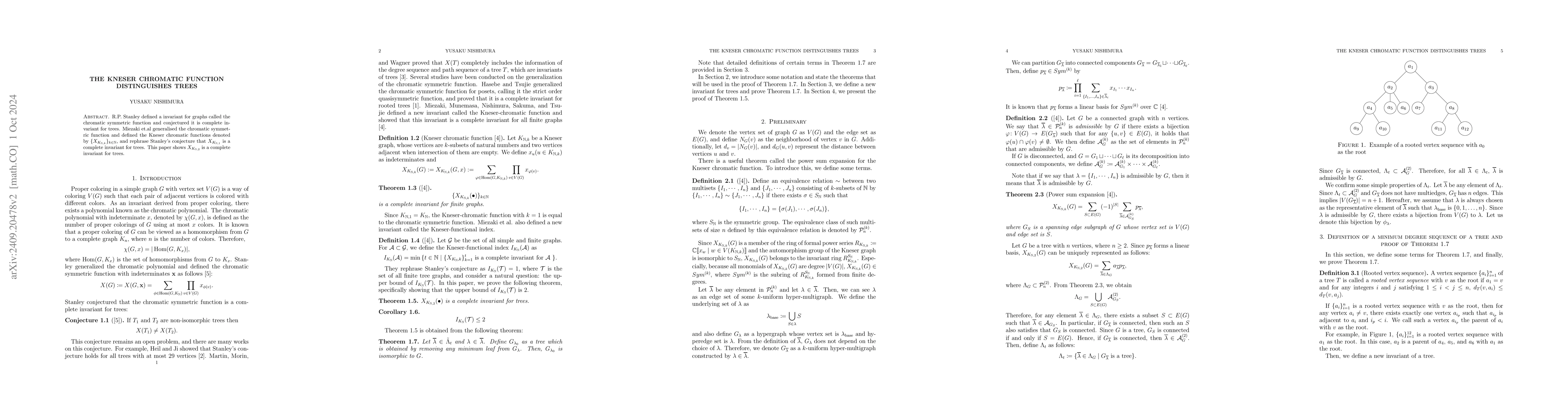 The paper demonstrates that the Kneser chromatic function $X_{K_{\mathbb{N},2}}$ serves as a complete invariant distinguishing different trees, thereby confirming a generalized version of Stanley's conjecture on the chromatic symmetric function for trees.