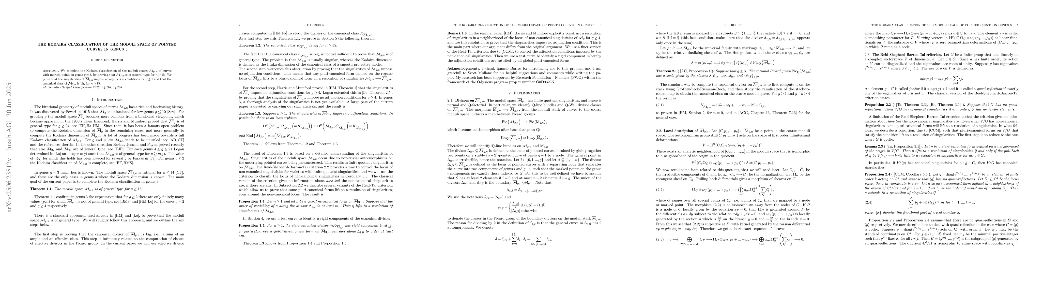 We complete the Kodaira classification of the moduli spaces $\overline{\mathcal{M}}_{g,n}$ of curves with marked points in genus $g=3$, by proving that $\overline{\mathcal{M}}_{3,n}$ is of general type for $n \geq 15$. We prove that the singularities of $\overline{\mathcal{M}}_{3,n}$ impose no adjunction conditions for $n \geq 1$ and that the canonical class of $\overline{\mathcal{M}}_{3,n}$ is big for $n \geq 15$.