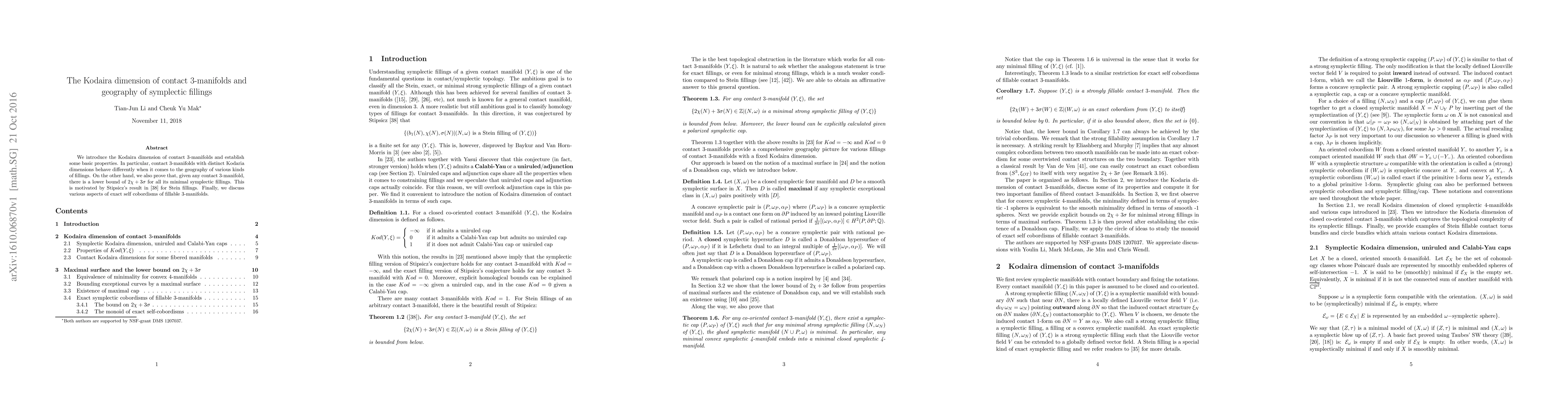 Summary: The paper introduces the Kodaira dimension for contact 3-manifolds and explores how distinct dimensions affect the geography of symplectic fillings. It establishes a lower bound for minimal symplectic fillings and discusses exact self-cobordisms of fillable 3-manifolds.