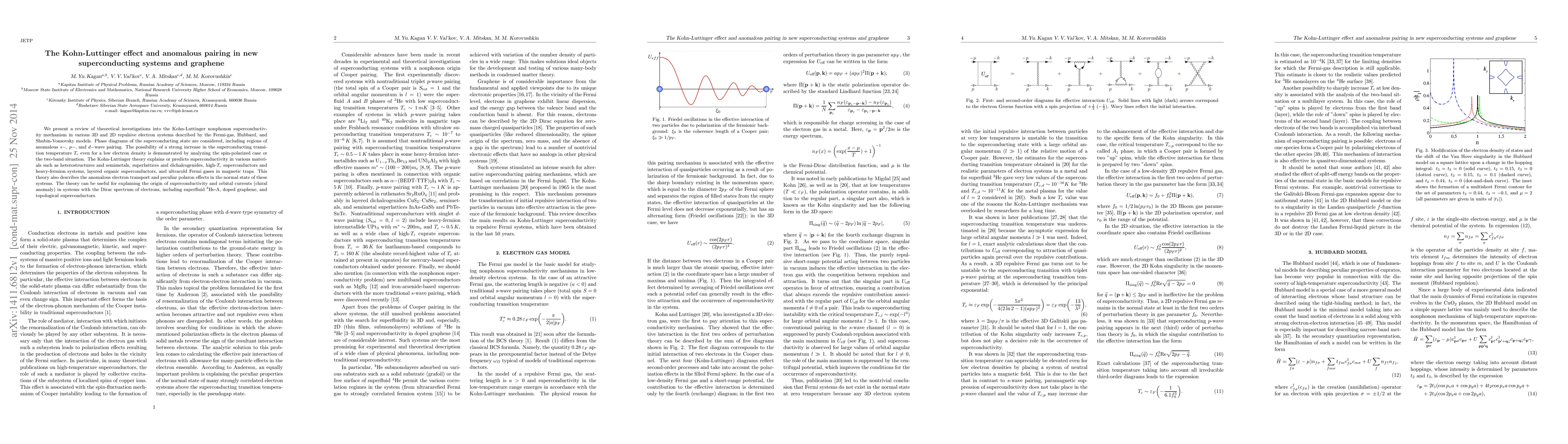This paper reviews the Kohn-Luttinger mechanism for nonphonon superconductivity in various 3D and 2D systems, highlighting anomalous $s$-, $p$-, and $d$-wave pairing and the potential for high $T_c$ even at low electron density. The theory explains superconductivity in diverse materials and describes anomalous transport and polaron effects.