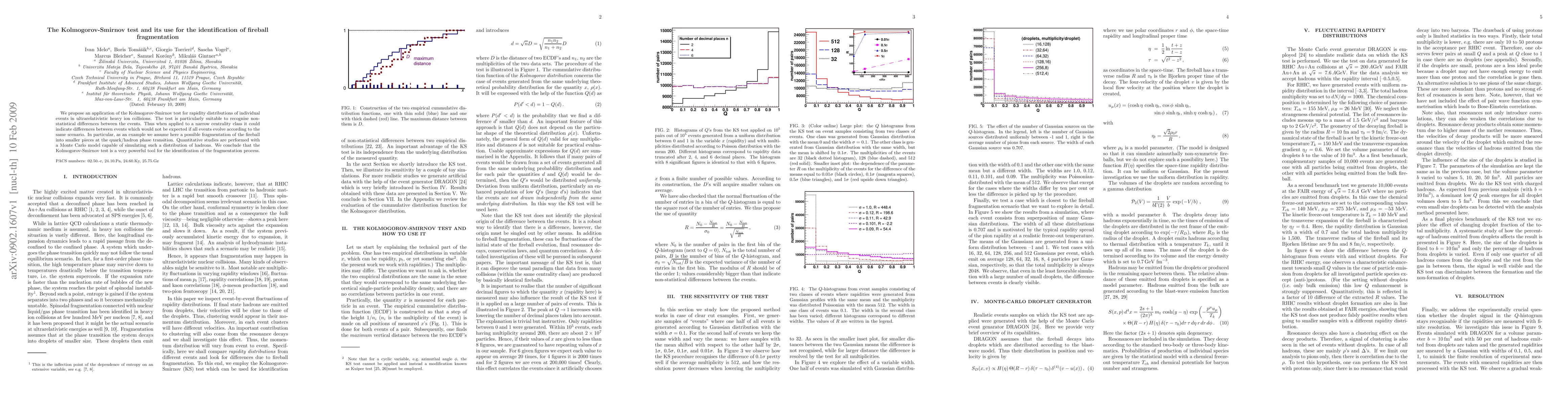 The paper proposes using the Kolmogorov-Smirnov test to identify non-statistical differences in rapidity distributions from ultrarelativistic heavy ion collisions, suggesting it can reveal fragmentation of the fireball at the quark/hadron phase transition. Monte Carlo simulations confirm the test's effectiveness in identifying such fragmentation processes.