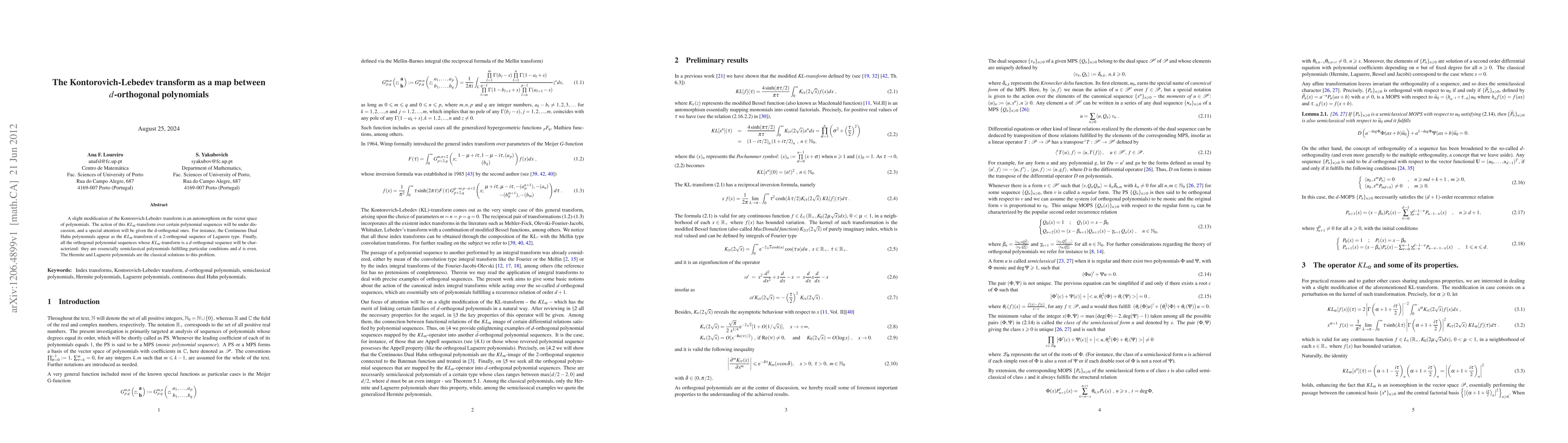 The paper explores the Kontorovich-Lebedev transform's role as an automorphism on polynomial spaces, particularly focusing on how it maps $d$-orthogonal polynomials to other $d$-orthogonal sequences, with special emphasis on the Continuous Dual Hahn polynomials. It characterizes the semiclassical polynomials that maintain their $d$-orthogonality under this transform, with $d$ being even, and identifies classical Hermite and Laguerre polynomials as solutions.