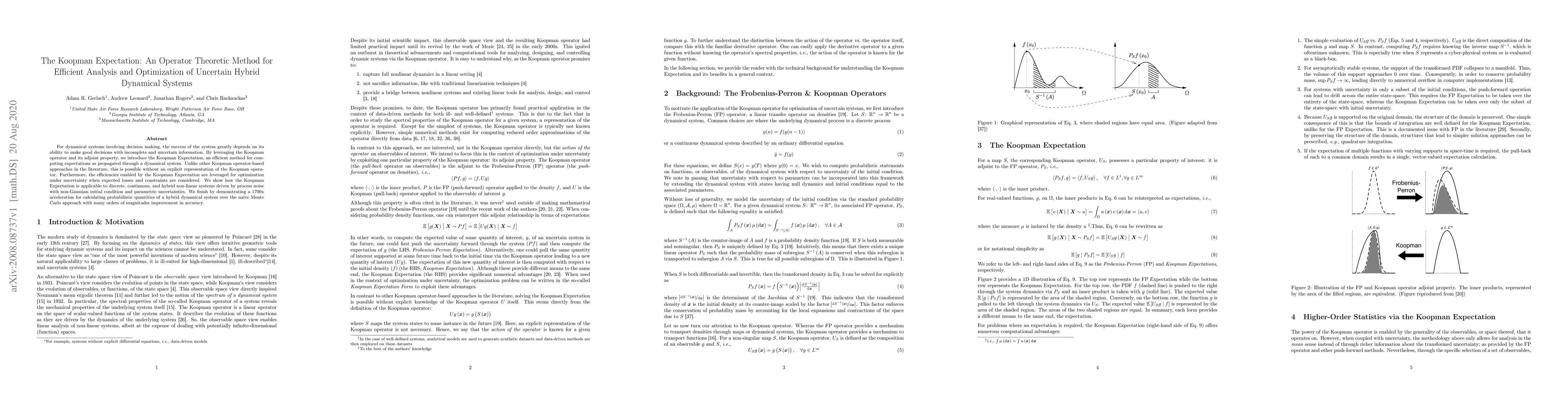 The Koopman Expectation is an operator theoretic method that efficiently computes expectations in uncertain hybrid dynamical systems without requiring an explicit representation of the Koopman operator. It enables optimization under uncertainty and demonstrates significant speed and accuracy improvements over traditional Monte Carlo methods.