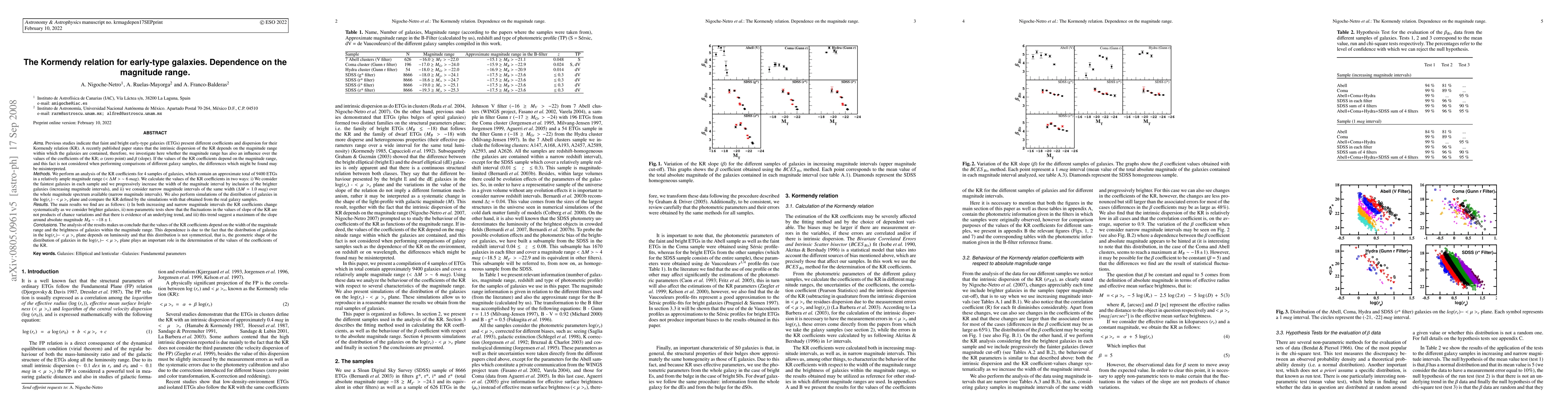 The Kormendy Relation for early-type galaxies shows that its coefficients depend on both magnitude range width and galaxy brightness within the range, indicating an asymmetrical distribution of galaxies in a certain plane.