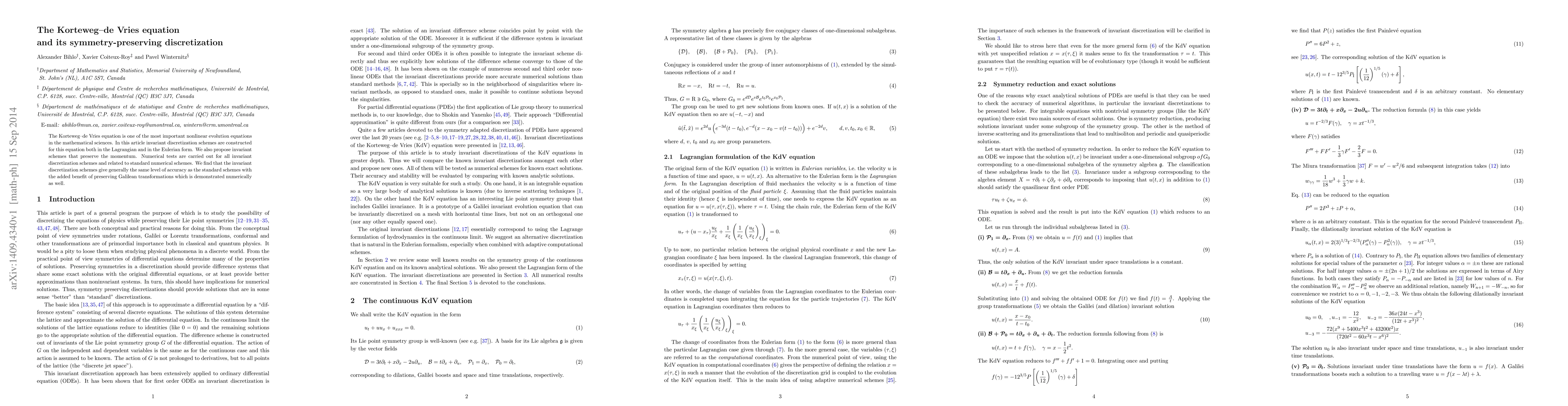 The Korteweg-de Vries equation is one of the most important nonlinear evolution equations in the mathematical sciences. In this article invariant discretization schemes are constructed for this equation both in the Lagrangian and in the Eulerian form. We also propose invariant schemes that preserve the momentum. Numerical tests are carried out for all invariant discretization schemes and related to standard numerical schemes. We find that the invariant discretization schemes give generally the same level of accuracy as the standard schemes with the added benefit of preserving Galilean transformations which is demonstrated numerically as well.