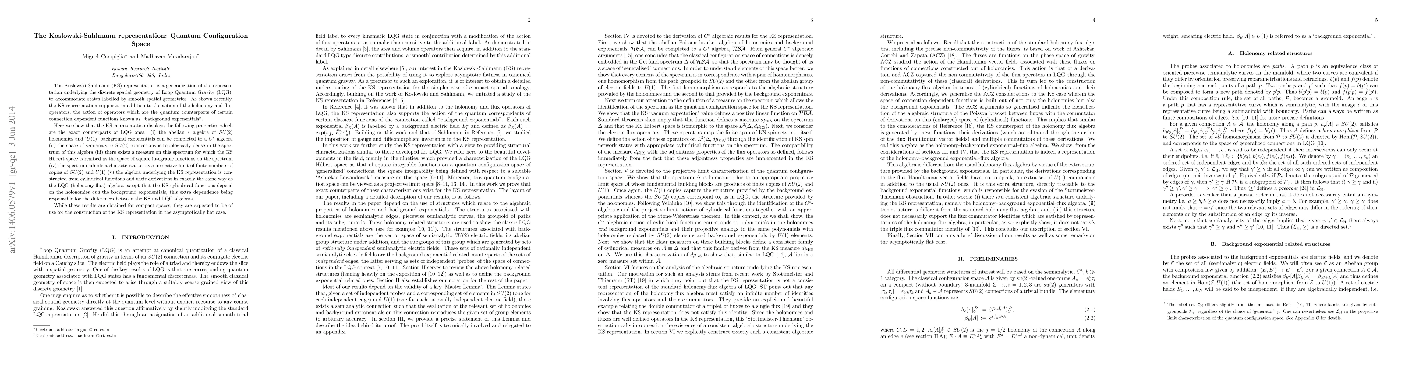 The Koslowski-Sahlmann (KS) representation is a generalization of the representation underlying the discrete spatial geometry of Loop Quantum Gravity (LQG), to accommodate states labelled by smooth spatial geometries. As shown recently, the KS representation supports, in addition to the action of the holonomy and flux operators, the action of operators which are the quantum counterparts of certain connection dependent functions known as "background exponentials". Here we show that the KS representation displays the following properties which are the exact counterparts of LQG ones: (i) the abelian $*$ algebra of $SU(2)$ holonomies and `$U(1)$' background exponentials can be completed to a $C^*$ algebra (ii) the space of semianalytic $SU(2)$ connections is topologically dense in the spectrum of this algebra (iii) there exists a measure on this spectrum for which the KS Hilbert space is realised as the space of square integrable functions on the spectrum (iv) the spectrum admits a characterization as a projective limit of finite numbers of copies of $SU(2)$ and $U(1)$ (v) the algebra underlying the KS representation is constructed from cylindrical functions and their derivations in exactly the same way as the LQG (holonomy-flux) algebra except that the KS cylindrical functions depend on the holonomies and the background exponentials, this extra dependence being responsible for the differences between the KS and LQG algebras. While these results are obtained for compact spaces, they are expected to be of use for the construction of the KS representation in the asymptotically flat case.