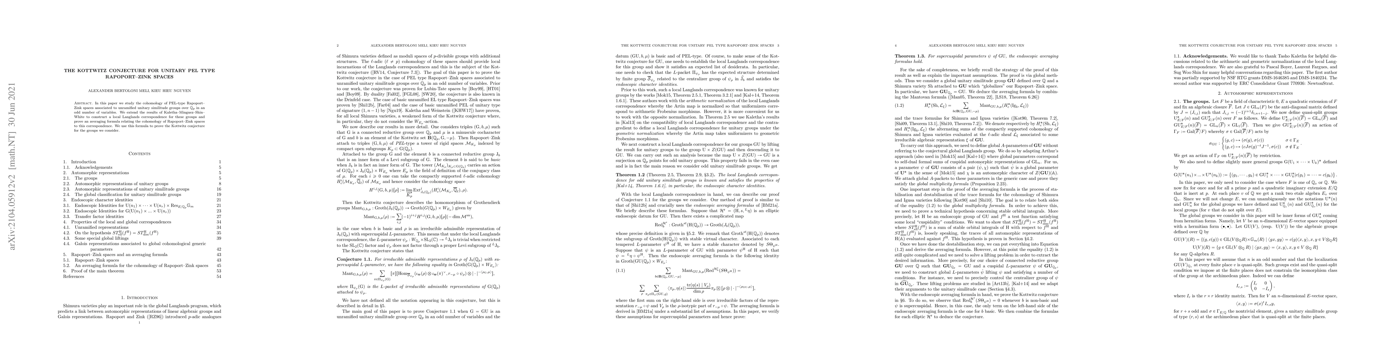 This paper constructs a local Langlands correspondence for unramified unitary similitude groups over $\Q_p$ and proves an averaging formula linking the cohomology of Rapoport-Zink spaces to this correspondence, thereby verifying the Kottwitz conjecture for these groups.