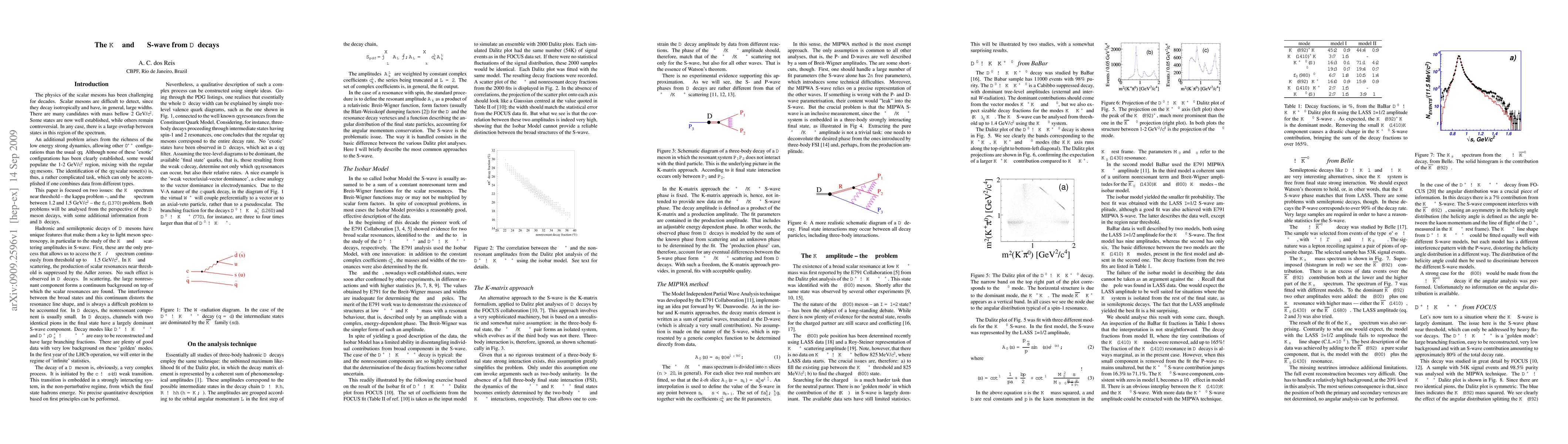 This paper is focused on two issues: the K\pi spectrum near threshold - the kappa problem -, and the pi\pi spectrum between 1.2 and 1.5 GeV/(c^2) -- the f_0(1370) problem. Both problems will be analysed from the perspective of the $D$ meson decays, with some additional information from $\tau$ and B decays.