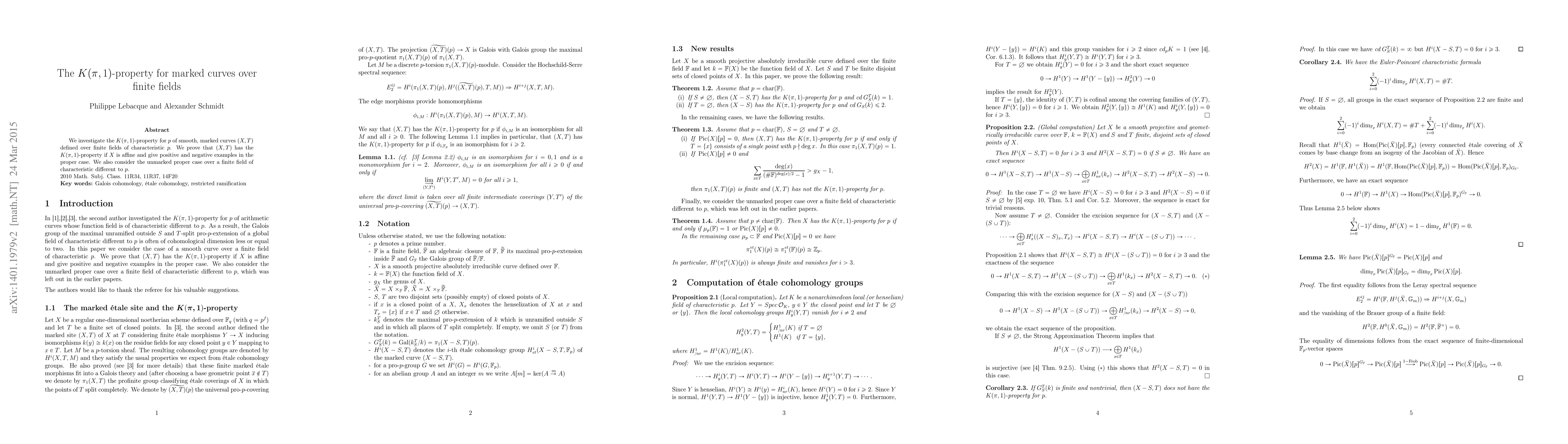 Researchers investigated whether marked curves over finite fields have the K($θ$,1)-property, finding that it holds for affine curves and presenting examples in both proper and unmarked cases.