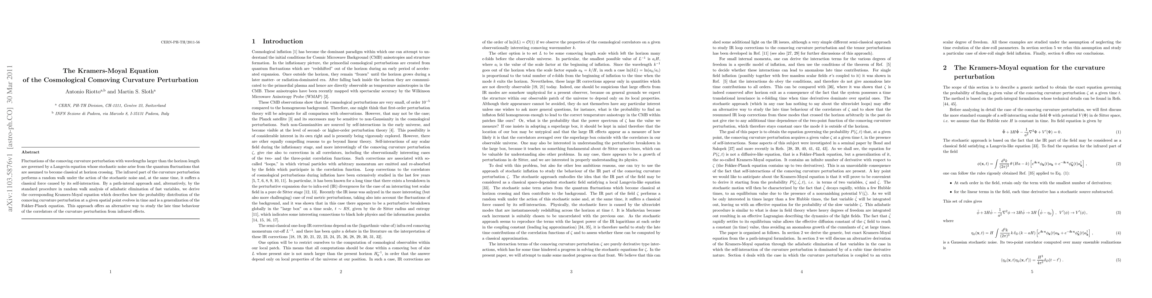 Fluctuations of the comoving curvature perturbation with wavelengths larger than the horizon length are governed by a Langevin equation whose stochastic noise arise from the quantum fluctuations that are assumed to become classical at horizon crossing. The infrared part of the curvature perturbation performs a random walk under the action of the stochastic noise and, at the same time, it suffers a classical force caused by its self-interaction. By a path-interal approach and, alternatively, by the standard procedure in random walk analysis of adiabatic elimination of fast variables, we derive the corresponding Kramers-Moyal equation which describes how the probability distribution of the comoving curvature perturbation at a given spatial point evolves in time and is a generalization of the Fokker-Planck equation. This approach offers an alternative way to study the late time behaviour of the correlators of the curvature perturbation from infrared effects.
