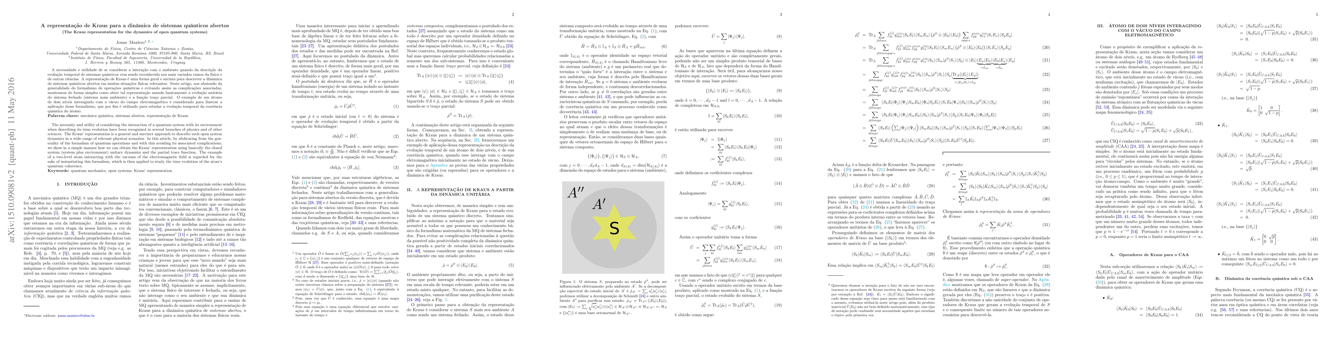 The necessity and utility of considering the interaction of a quantum system with its environment when describing its time evolution have been recognized in several branches of physics and of other sciences. The Kraus' representation is a general and succinct approach to describe such open system dynamics in a wide range of relevant physical scenarios. In this article, by abdicating from the generality of the formalism of quantum operations and with this avoiding its associated complications, we show in a simple manner how we can obtain the Kraus' representation using basically the closed system (system plus environment) unitary dynamics and the partial trace function. The example of a two-level atom interacting with the vacuum of the electromagnetic field is regarded for the sake of instantiating this formalism, which is then applied to study the time evolution of the atom's quantum coherence.