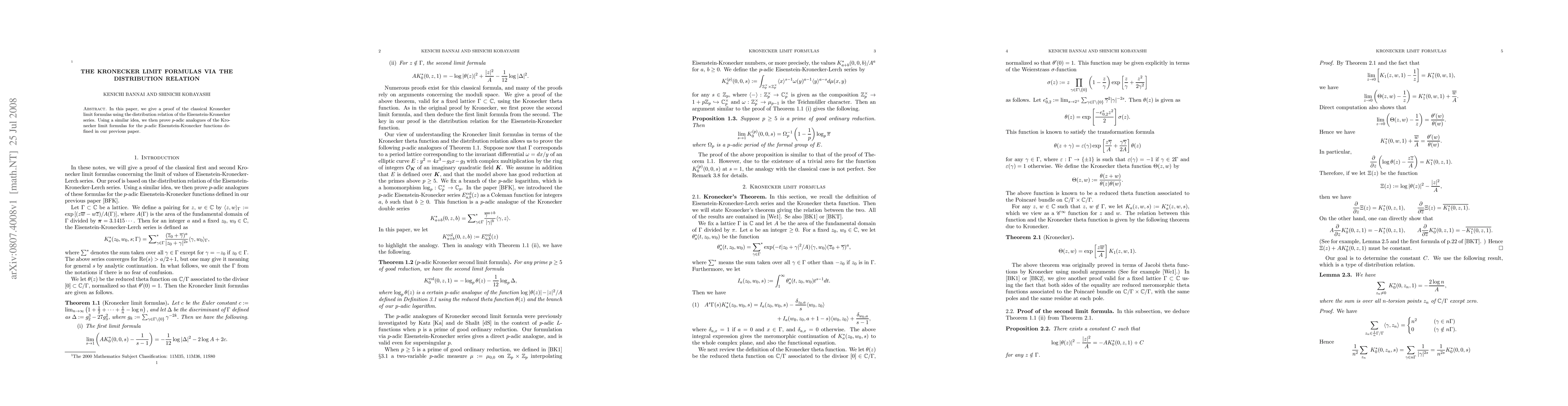 This paper proves the Kronecker limit formulas through the distribution relation of Eisenstein-Kronecker series and extends these proofs to $p$-adic analogues using $p$-adic Eisenstein-Kronecker functions.