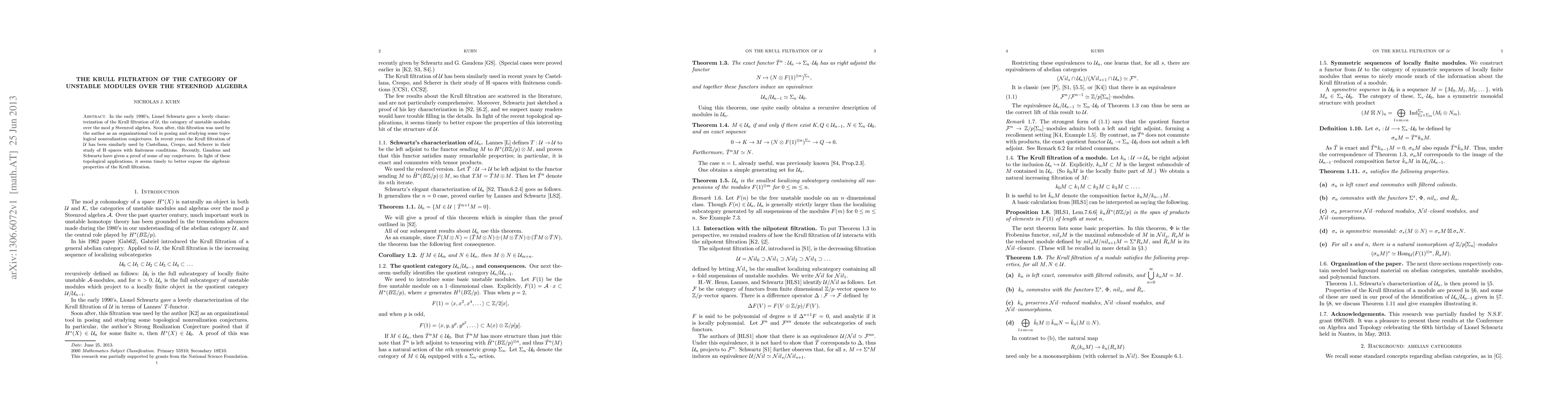 In the early 1990's, Lionel Schwartz gave a lovely characterization of the Krull filtration of U, the category of unstable modules over the mod p Steenrod algebra. Soon after, this filtration was used by the author as an organizational tool in posing and studying some topological nonrealization conjectures. In recent years the Krull filtration of U has been similarly used by Castellana, Crespo, and Scherer in their study of H--spaces with finiteness conditions, and Gaudens and Schwartz have given a proof of some of my conjectures. In light of these topological applications, it seems timely to better expose the algebraic properties of the Krull filtration.