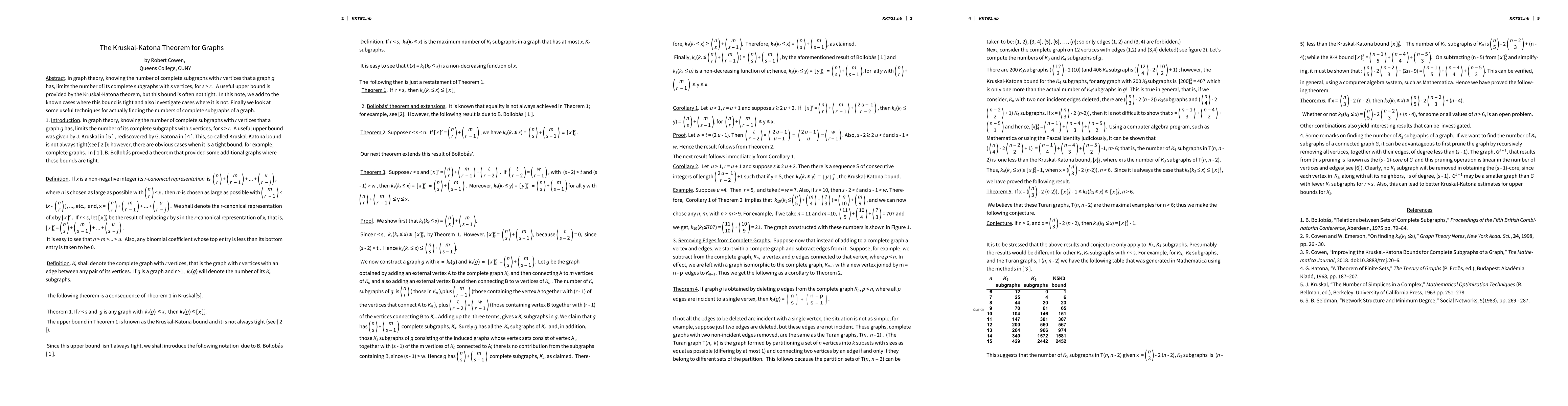 The paper presents new theorems and extensions to Bollobás' theorem, providing conditions for equality in the Kruskal-Katona bound and identifying specific graph structures where these conditions hold.