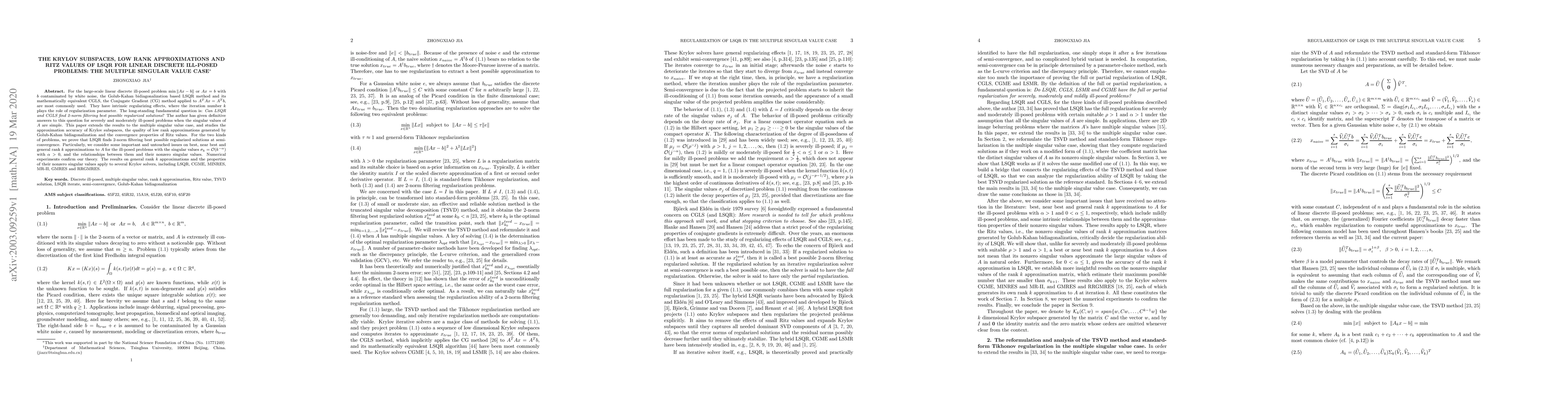 For the large-scale linear discrete ill-posed problem $\min\|Ax-b\|$ or $Ax=b$ with $b$ contaminated by white noise, the Golub-Kahan bidiagonalization based LSQR method and its mathematically equivalent CGLS, the Conjugate Gradient (CG) method applied to $A^TAx=A^Tb$, are most commonly used. They have intrinsic regularizing effects, where the iteration number $k$ plays the role of regularization parameter. The long-standing fundamental question is: {\em Can LSQR and CGLS find 2-norm filtering best possible regularized solutions}? The author has given definitive answers to this question for severely and moderately ill-posed problems when the singular values of $A$ are simple. This paper extends the results to the multiple singular value case, and studies the approximation accuracy of Krylov subspaces, the quality of low rank approximations generated by Golub-Kahan bidiagonalization and the convergence properties of Ritz values. For the two kinds of problems, we prove that LSQR finds 2-norm filtering best possible regularized solutions at semi-convergence. Particularly, we consider some important and untouched issues on best, near best and general rank $k$ approximations to $A$ for the ill-posed problems with the singular values $\sigma_k=\mathcal{O}(k^{-\alpha})$ with $\alpha>0$, and the relationships between them and their nonzero singular values. Numerical experiments confirm our theory. The results on general rank $k$ approximations and the properties of their nonzero singular values apply to several Krylov solvers, including LSQR, CGME, MINRES, MR-II, GMRES and RRGMRES.