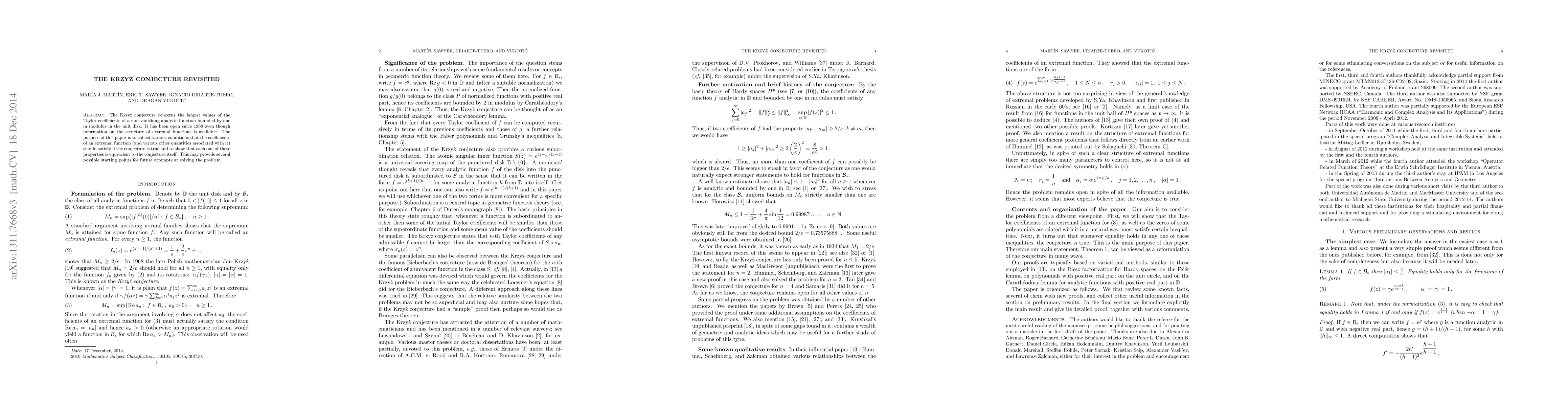The Krzy\.z conjecture concerns the largest values of the Taylor coefficients of a non-vanishing analytic function bounded by one in modulus in the unit disk. It has been open since 1968 even though information on the structure of extremal functions is available. The purpose of this paper is to collect various conditions that the coefficients of an extremal function (and various other quantities associated with it) should satisfy if the conjecture is true and to show that each one of these properties is equivalent to the conjecture itself. This may provide several possible starting points for future attempts at solving the problem.