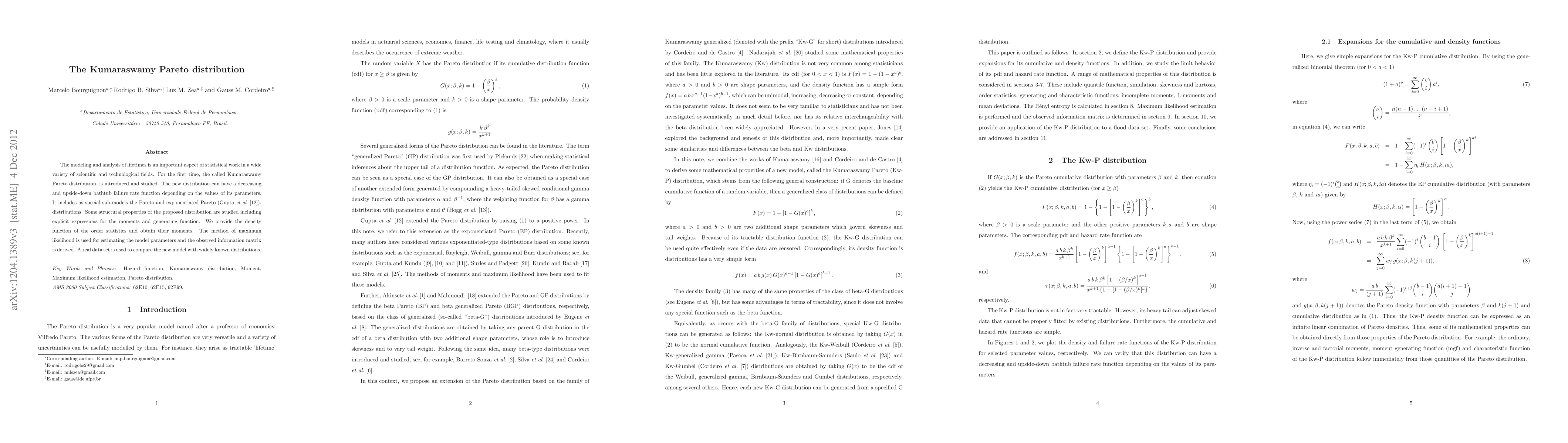 The Kumaraswamy Pareto distribution is introduced as a new statistical model that can exhibit decreasing and upside-down bathtub failure rate functions, and its parameters are estimated using the method of maximum likelihood.