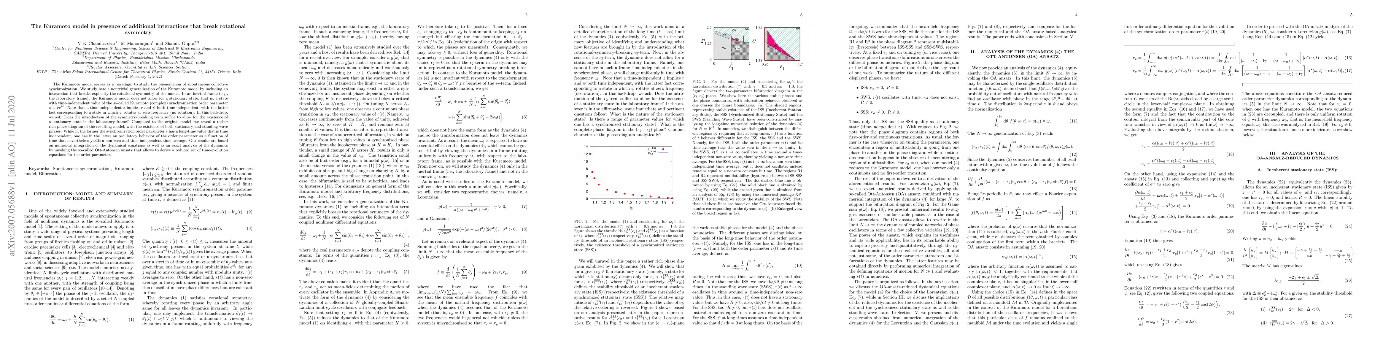 This paper explores a generalized Kuramoto model with an added interaction that breaks rotational symmetry, revealing a rich phase diagram with stationary and standing wave phases. The study finds that the symmetry-breaking term enables stationary states, while standing wave phases exhibit oscillatory order parameters with time-independent averages.
