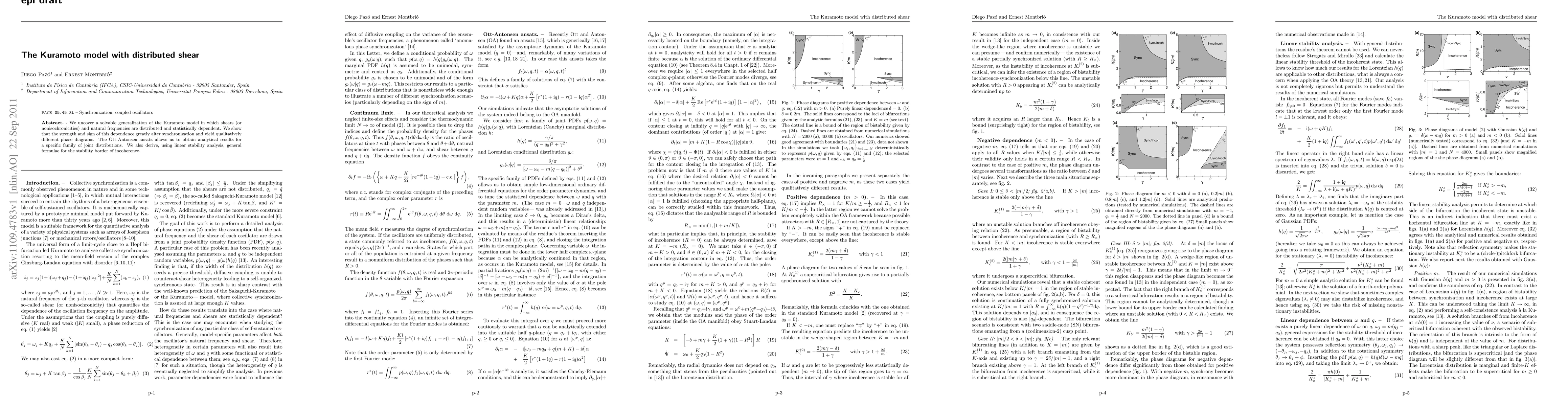 We uncover a solvable generalization of the Kuramoto model in which shears (or nonisochronicities) and natural frequencies are distributed and statistically dependent. We show that the strength and sign of this dependence greatly alter synchronization and yield qualitatively different phase diagrams. The Ott-Antonsen ansatz allows us to obtain analytical results for a specific family of joint distributions. We also derive, using linear stability analysis, general formulae for the stability border of incoherence.